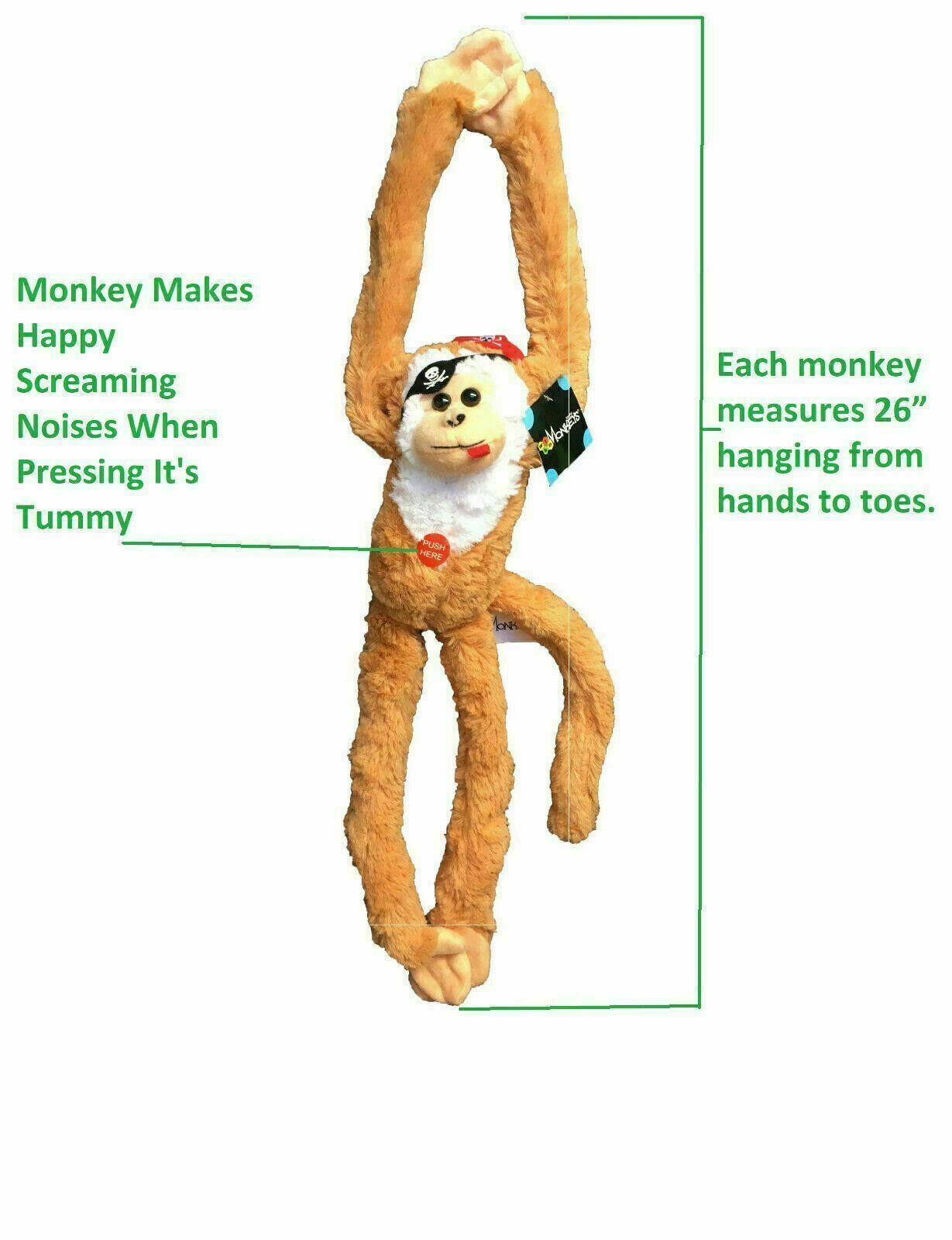 MARTHA'S VINEYARD Plush Stuffed Toy Hanging Monkey 18" w/ Sounds Lot of 6