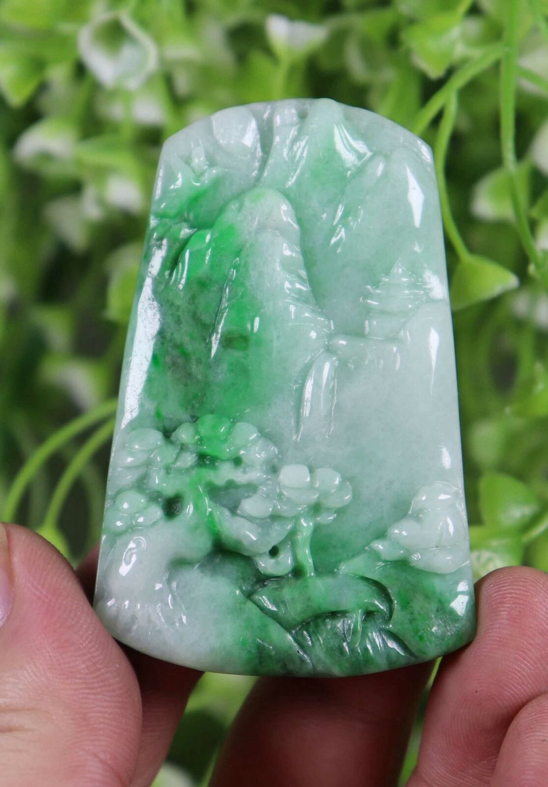 Certified Green 100% Natural A Jade jadeite Pendant landscape