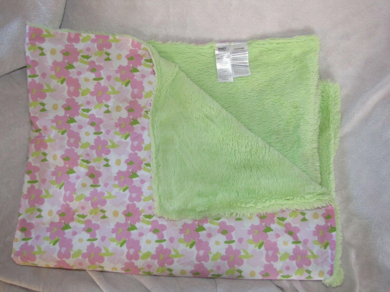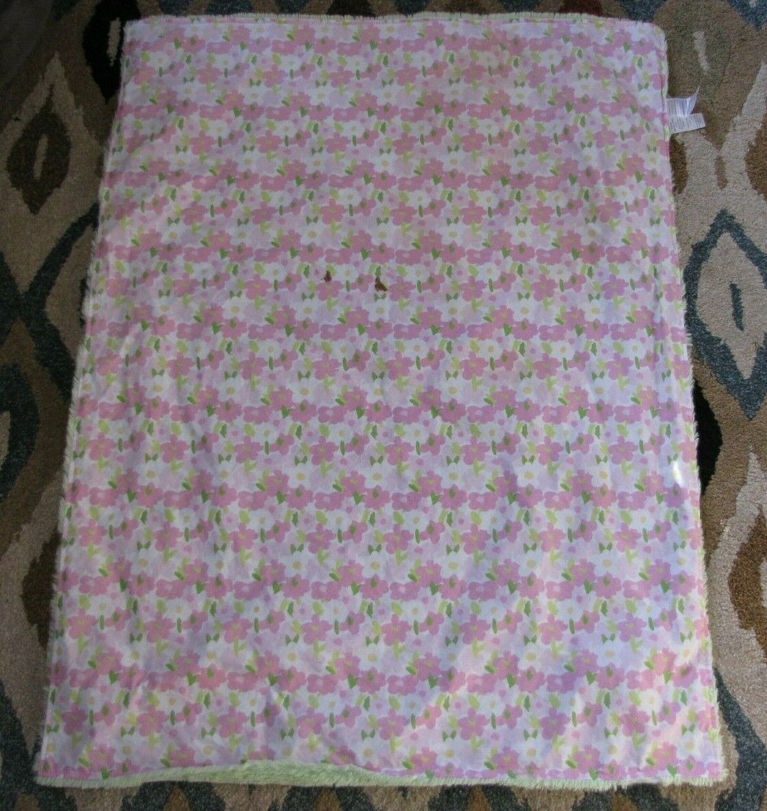 Baby Essentials White Pink Green Yellow Furry / Flower Floral Printed Blanket