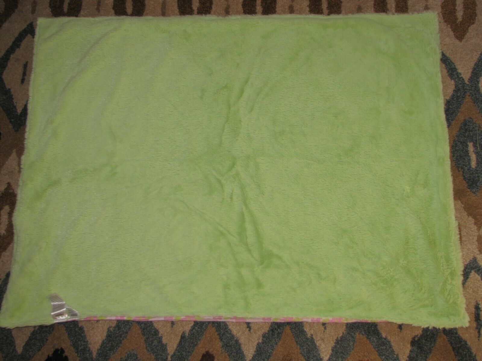 30" x 40". USED. NO RIPS OR HOLES. HAS WHAT I BELIEVE IS A FEW RUST STAINS ON THE FLORAL SIDE THAT DID NOT COME OUT IN THE WASH (HAS RECENTLY BEEN WASHED AND IS CLEAN.) SHIPS FROM A SMOKE-FREE AND PET-FREE WAREHOUSE.