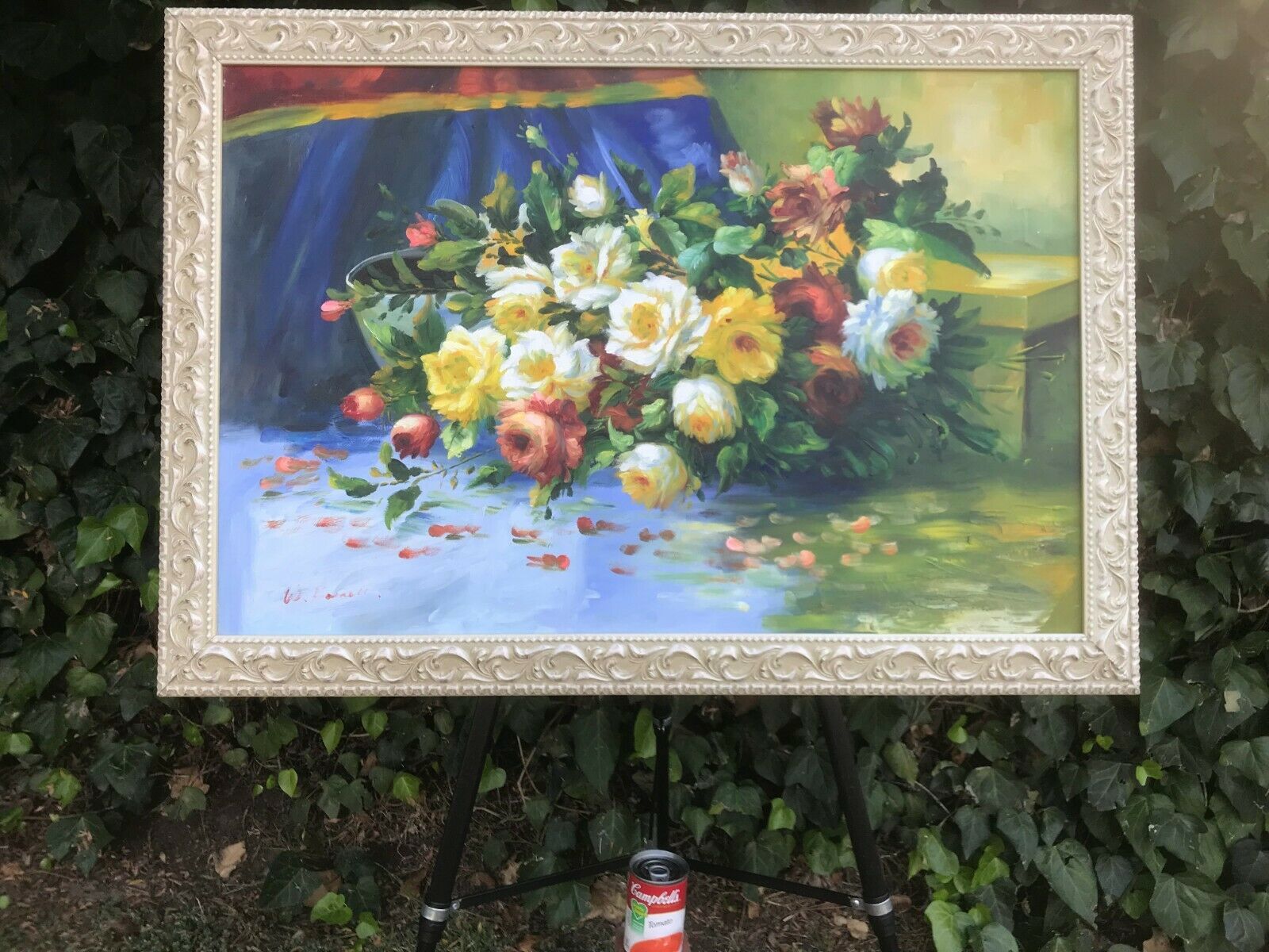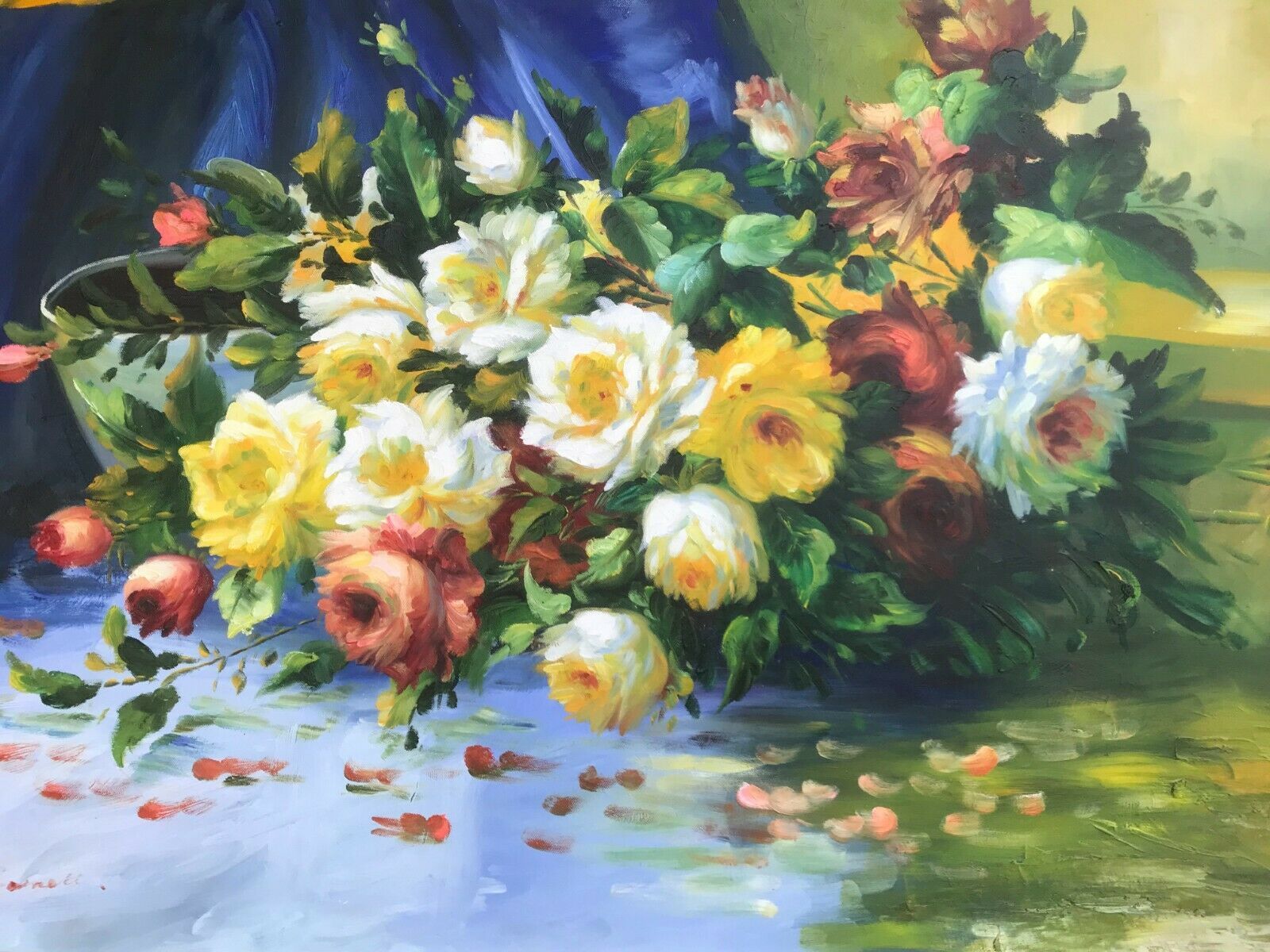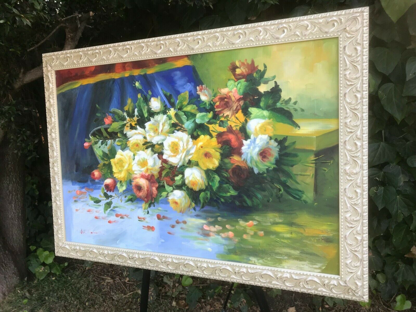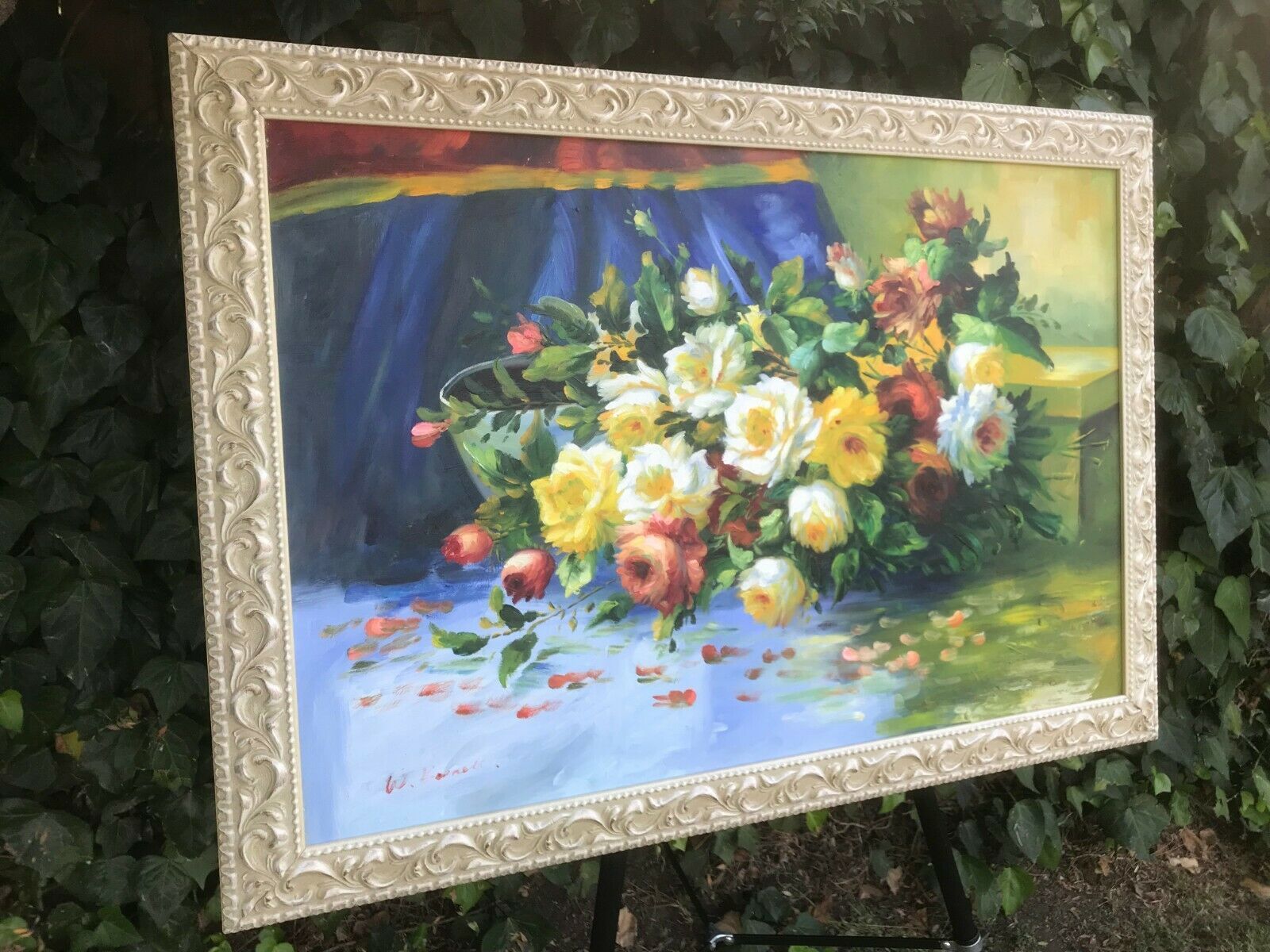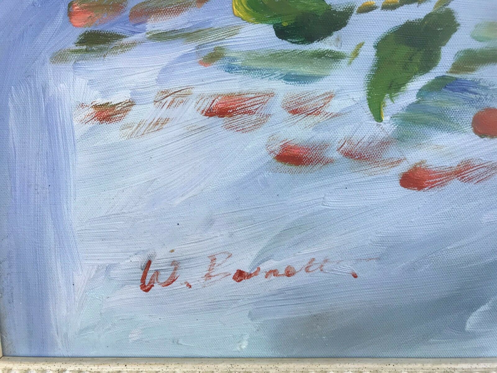 W BARNETT Original HUGE MODERN FLORAL IMPRESSIONIST STILL LIFE Oil on Canvas