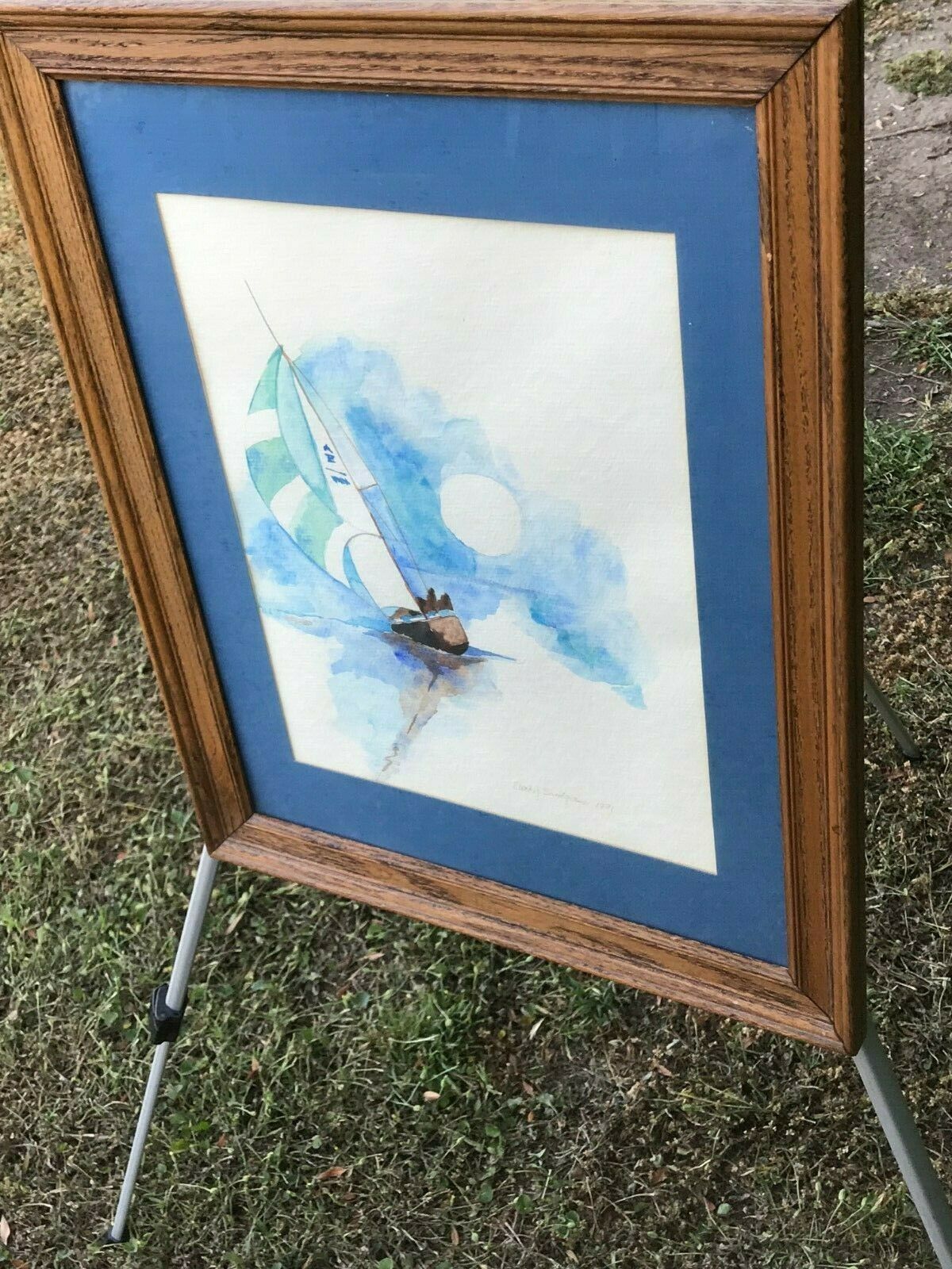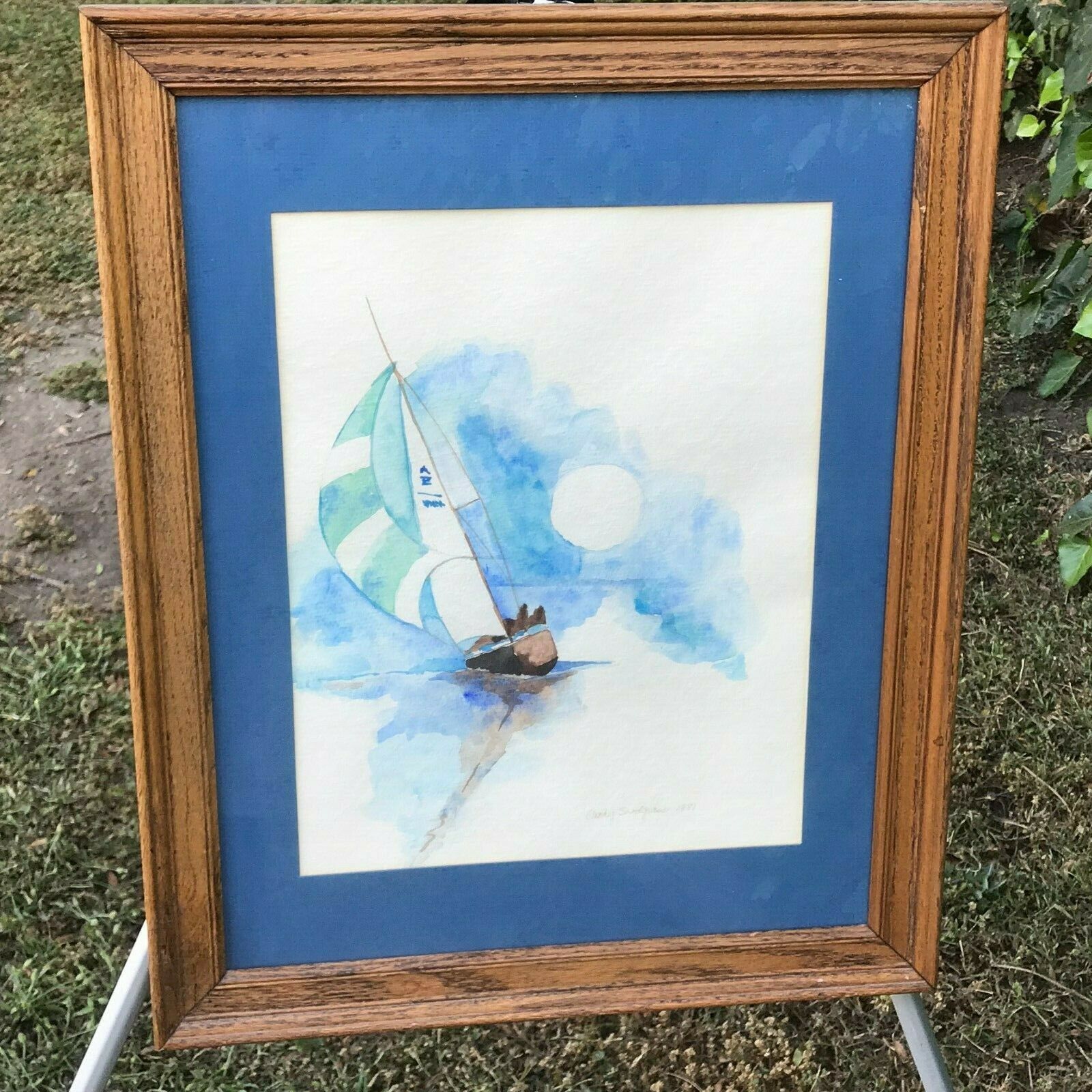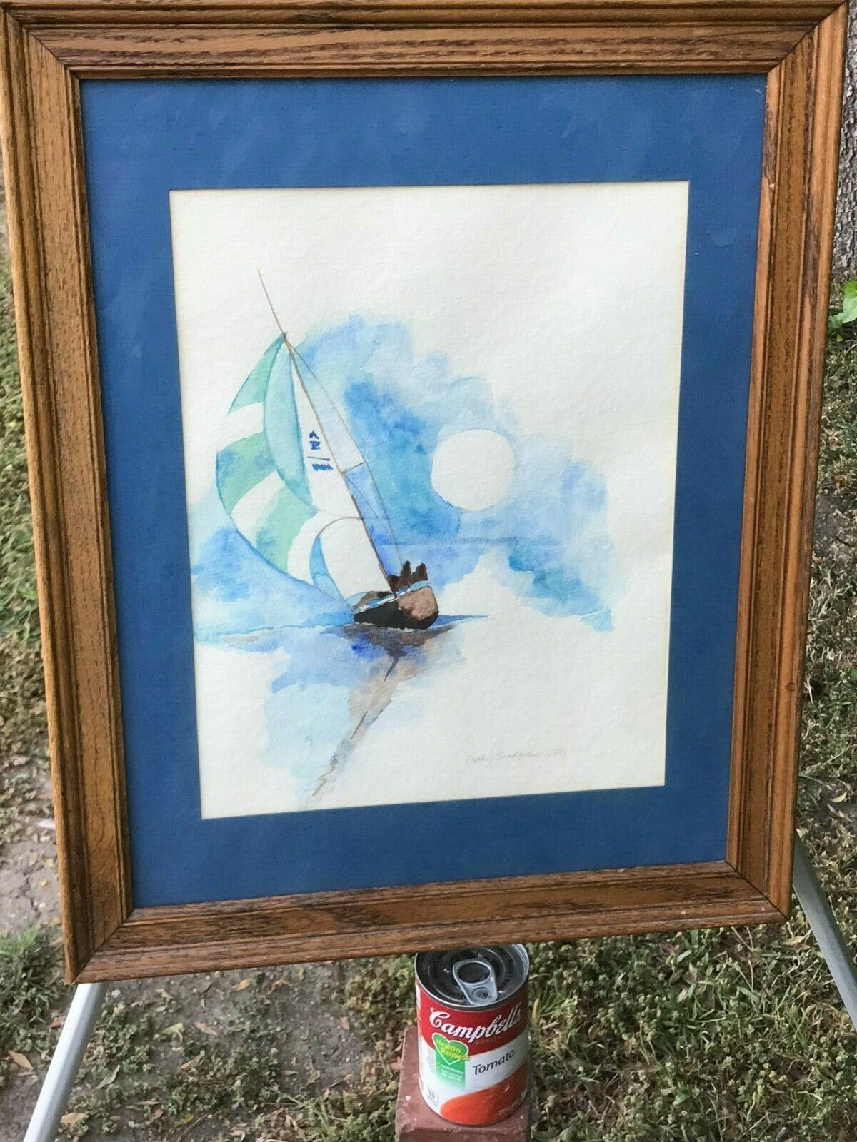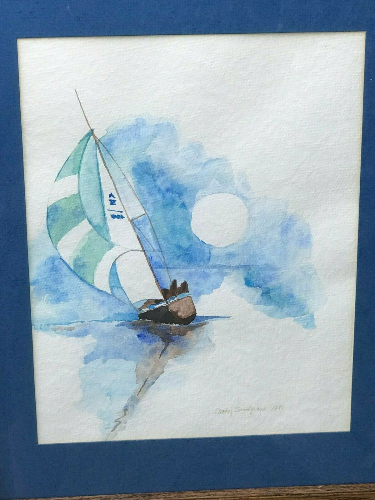 CATHY SNODGRASS Original 1980s MODERN SEASCAPE SAILING MINIMALIST ART WATERCOLOR