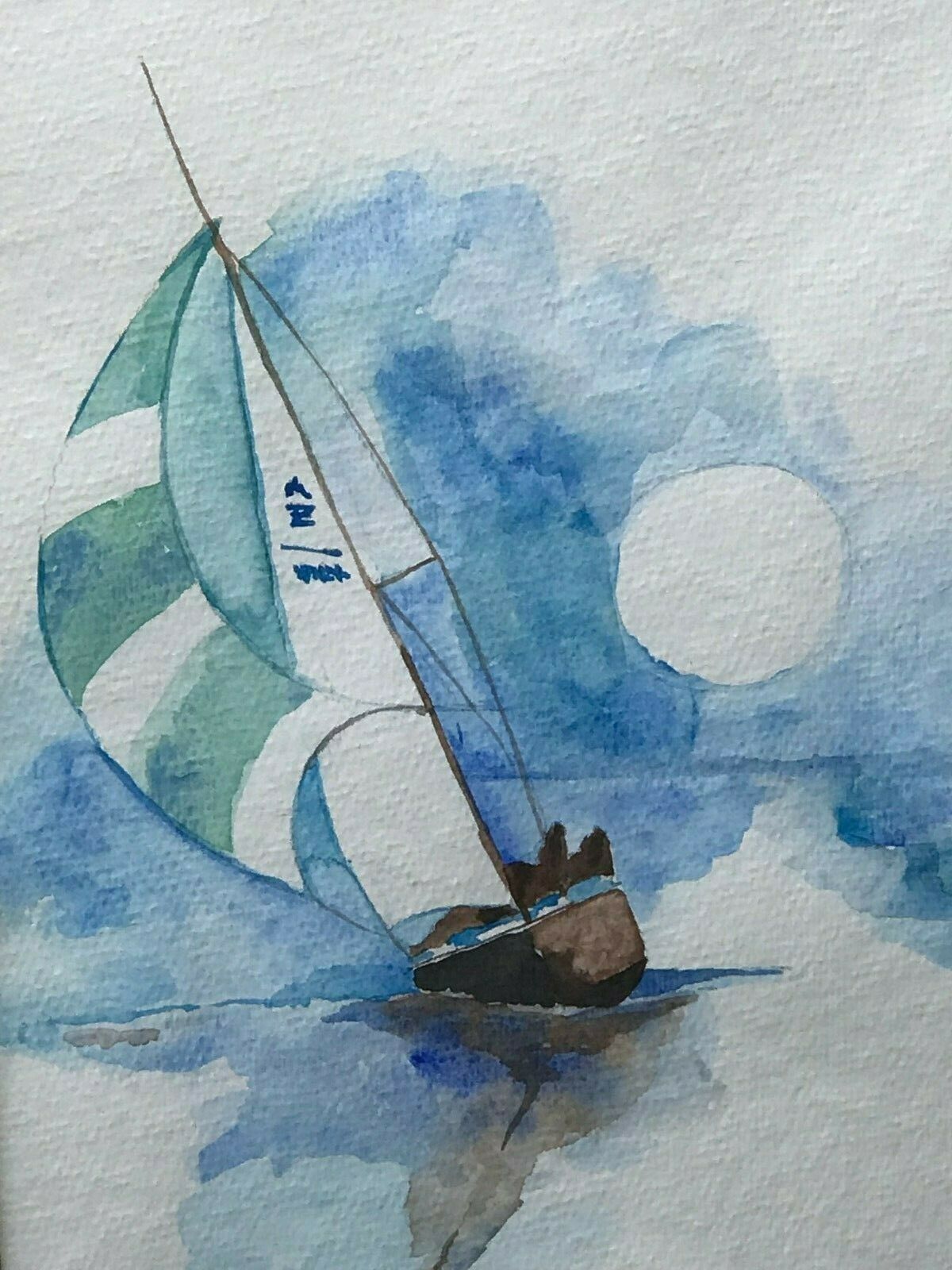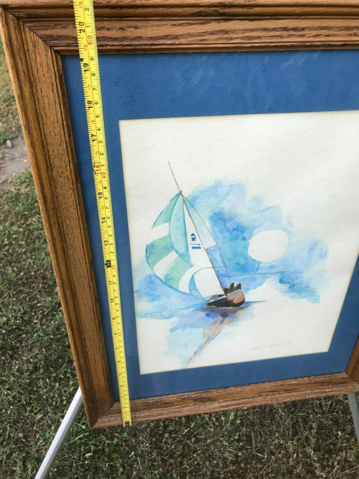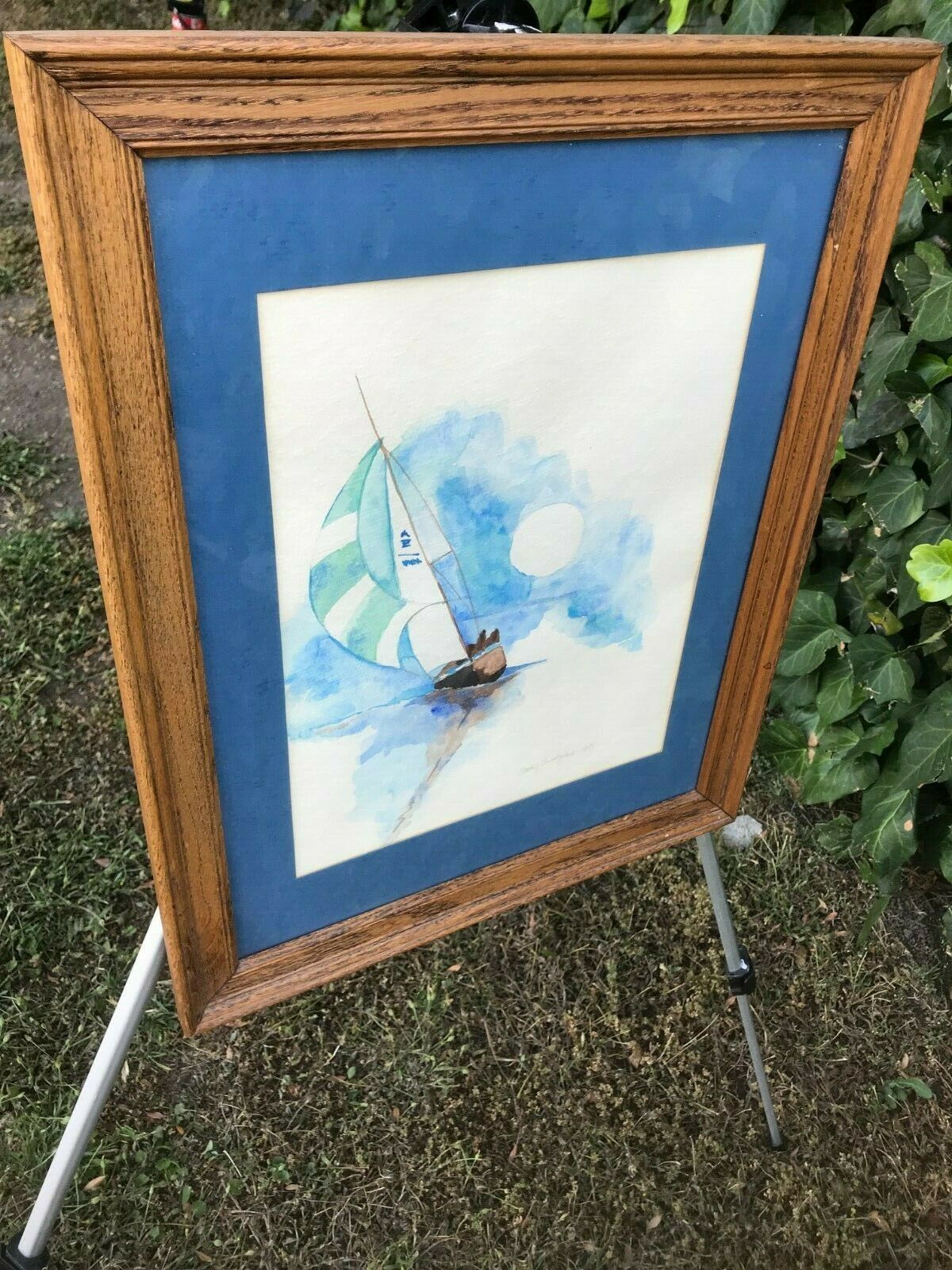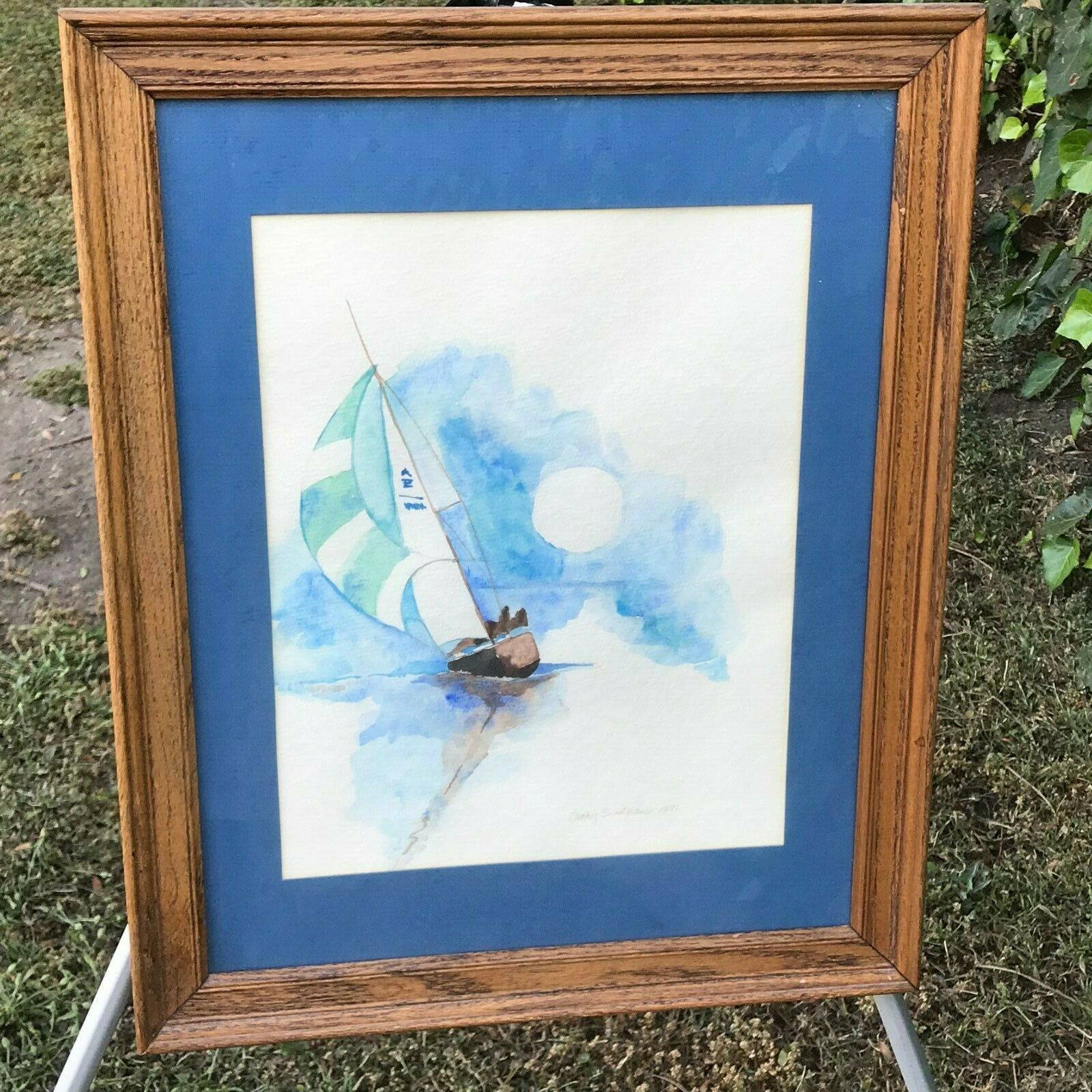 CATHY SNODGRASS Original 1980s MODERN SEASCAPE SAILING MINIMALIST ART WATERCOLOR