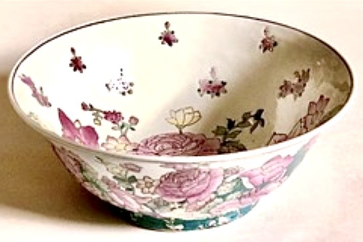 A Fine 20th Century Famille Rose Peony Porcelain Bowl. This piece measures 8.5" in diameter an 4" high having no breaks, chips, cracks, hairlines, repairs, nor stains.