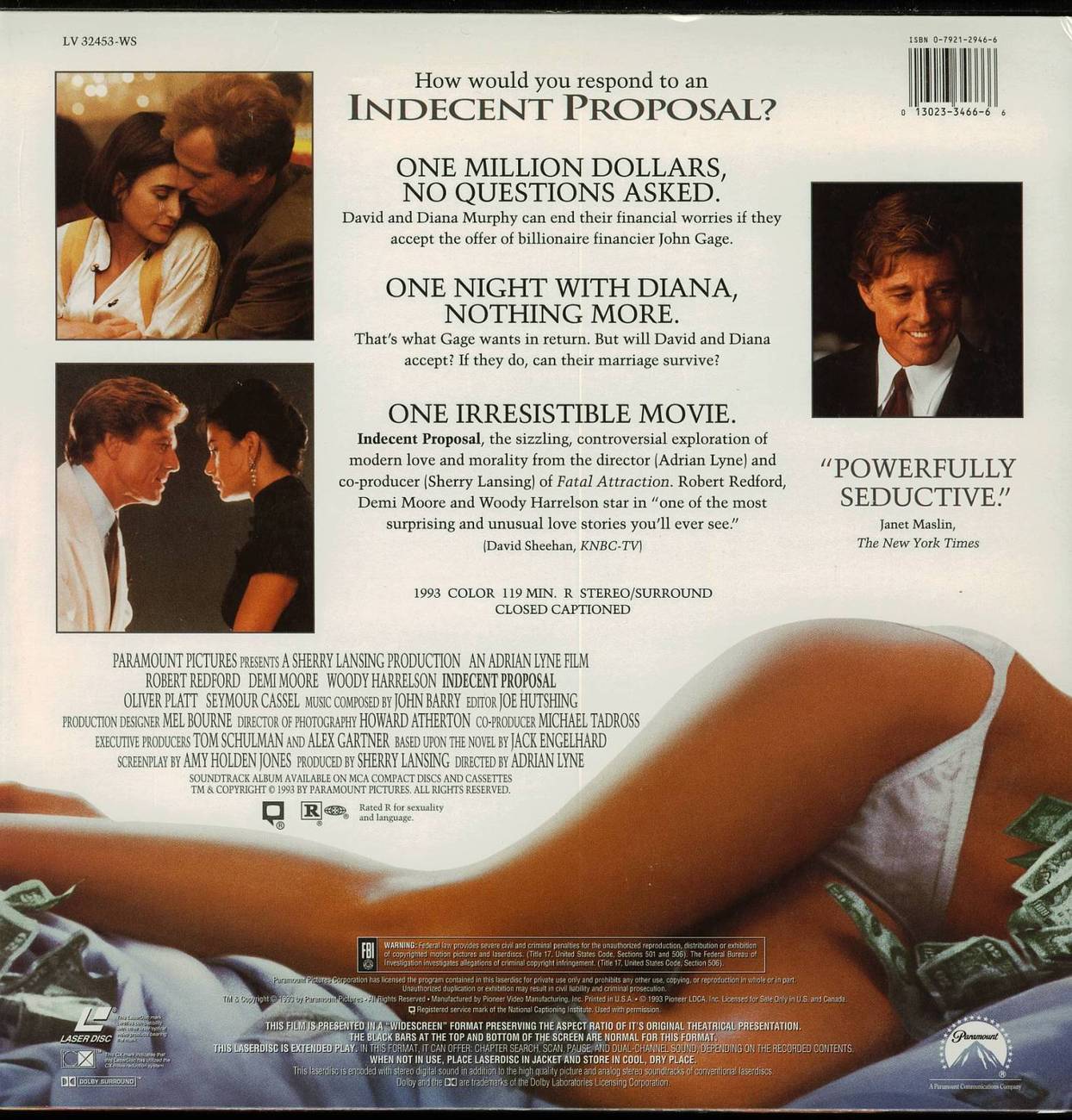 This is a previously viewed LASERDISC of the rare drama classic INDECENT PROPOSAL, staring: