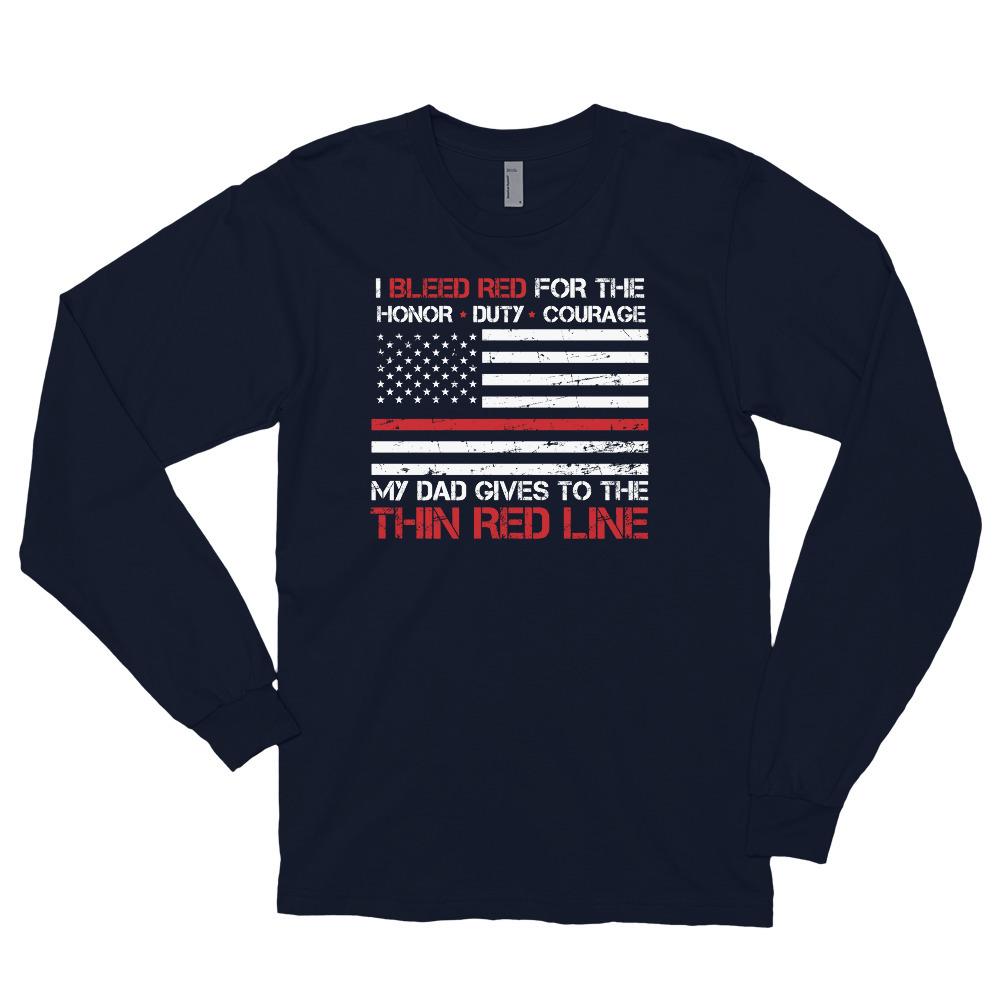 Thin Red Line Family Flag American Flag Proud Firefighter Dad Long sleeve t-sh
