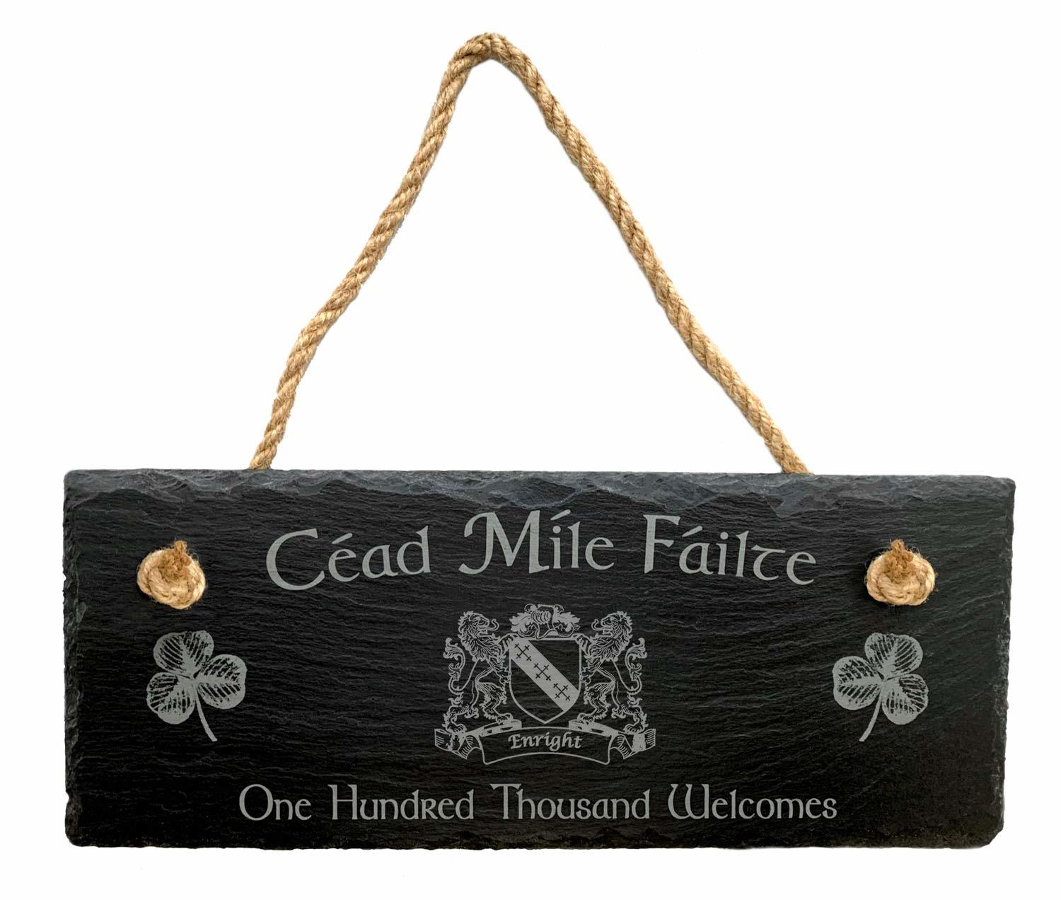 Enright Irish Coat of Arms Slate Plaque Blessing - "Céad Míle Fáilte" |