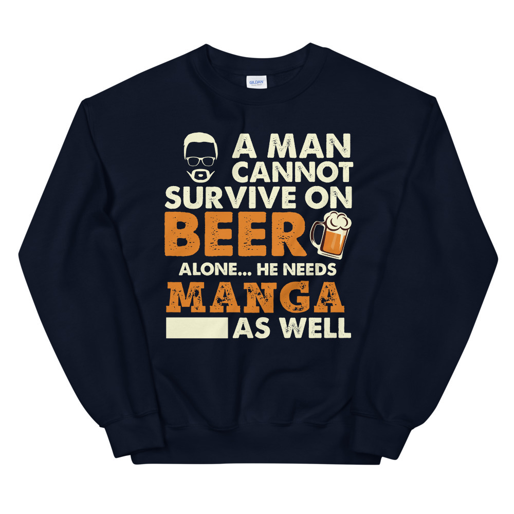 A Man Cannot Survive On Beer Alone He Needs Manga As Well Unisex Sweatshirt