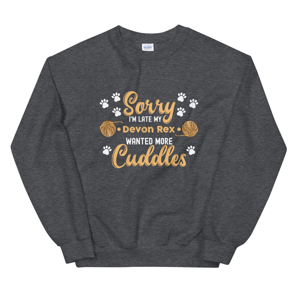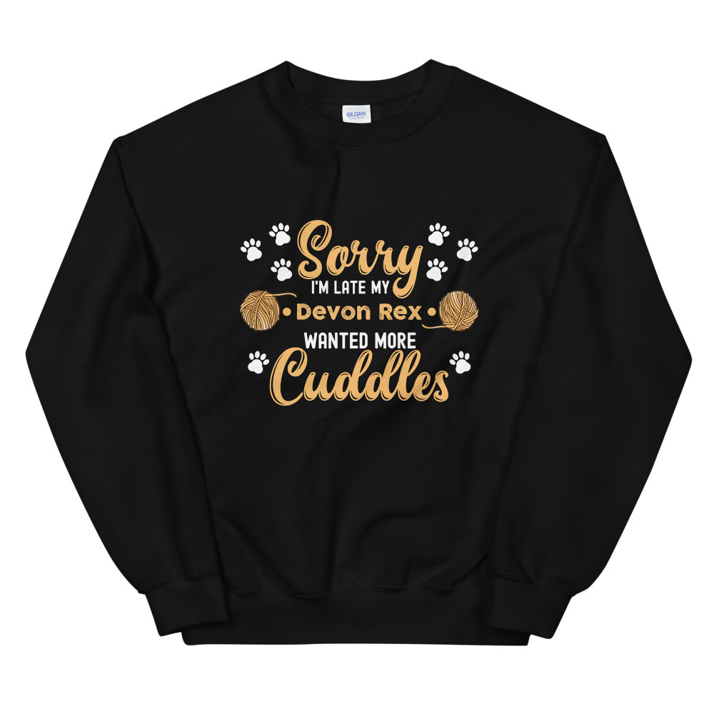 Cat Lover Gift idea Sorry Im Late My Devon Rex Wanted More Cuddles Unisex Sweats