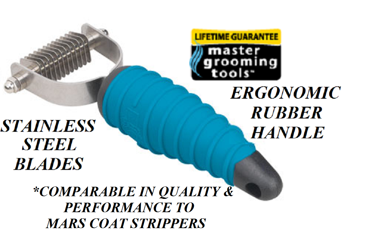 Les Strippers Master Grooming Tools ont été conçus par les toiletteurs spécialement pour augmenter le confort et réduire les risques de blessures liées à des mouvements répétitifs. Outil de décapage Master Grooming Tools Outil qui décape, démêle et démêle les manteaux rapidement et facilement - élimine les poils et le sous-poil rapidement! Cet outil à dénuder de haute qualité comprend des dents en acier inoxydable et des poignées en caoutchouc côtelées aux contours ergonomiques qui s'adaptent confortablement et en toute sécurité à la main pour un meilleur contrôle et un meilleur confort. Lames courbes spécialement conçus sont en acier inox durci avec des bouts arrondis pour la sécurité.