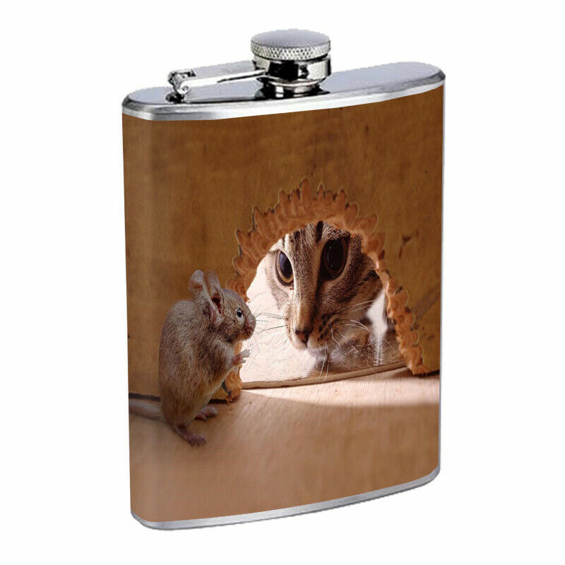 Cat & Mouse Em4 8oz Stainless Steel Flask Drinking Whiskey Liquor