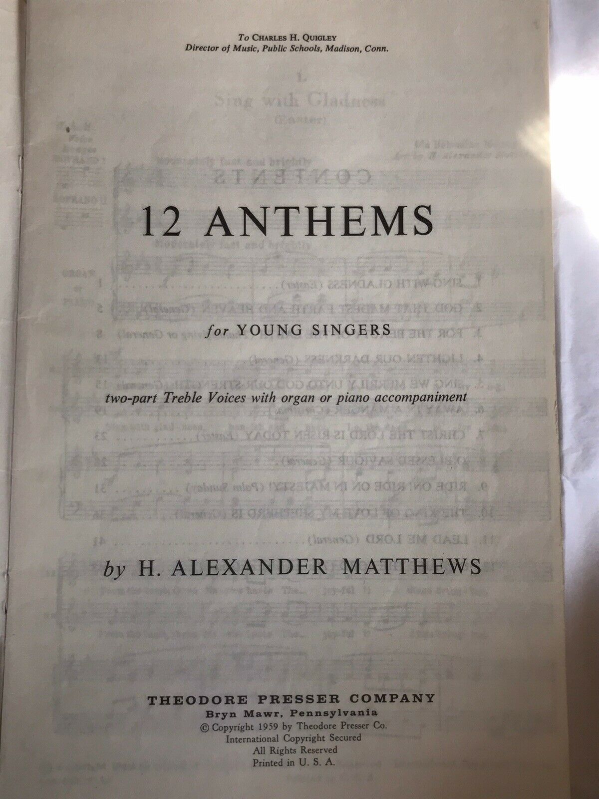 12 Anthems For Young Singers Choir Loft Choral Book. Condition is Used. Shipped with USPS First Class Package.