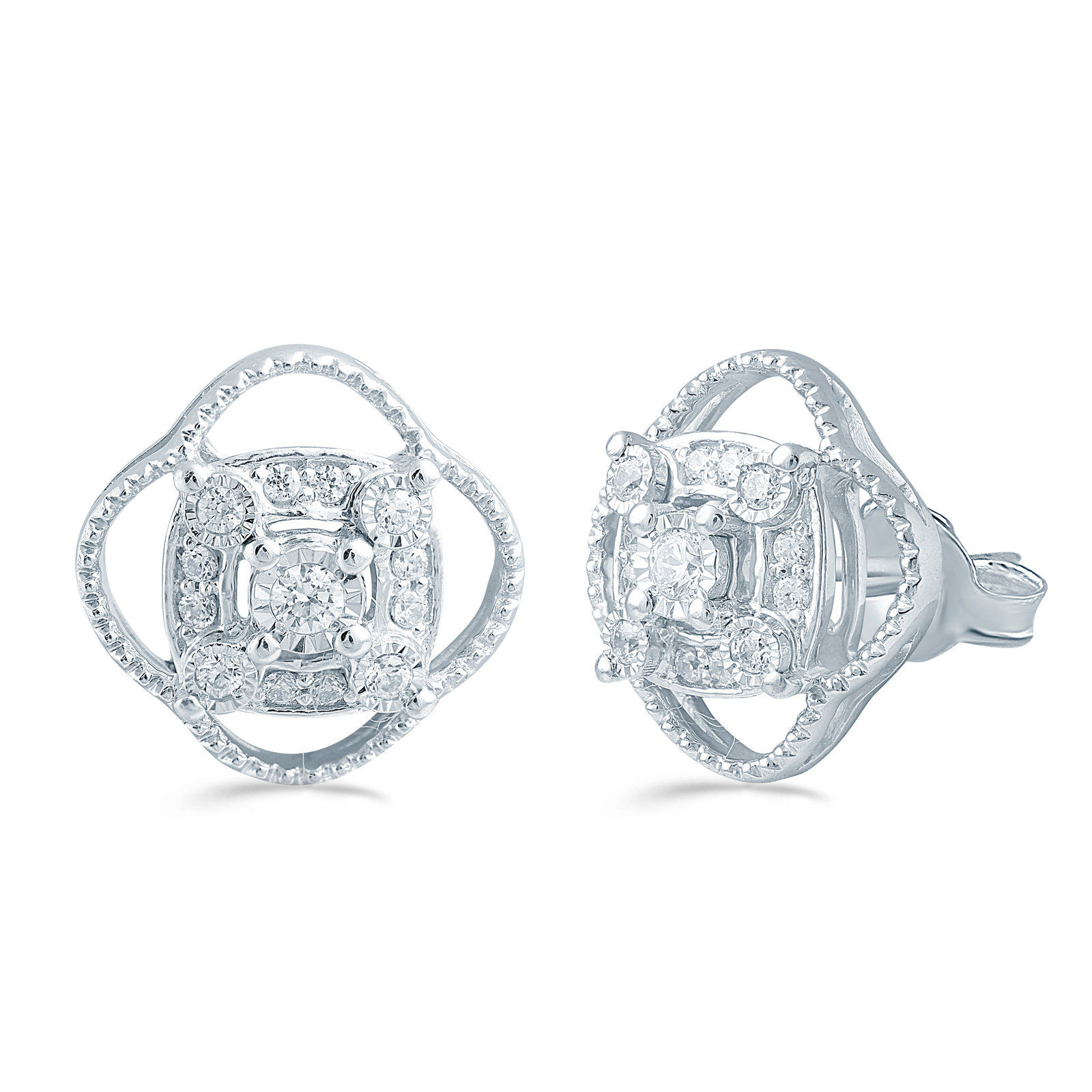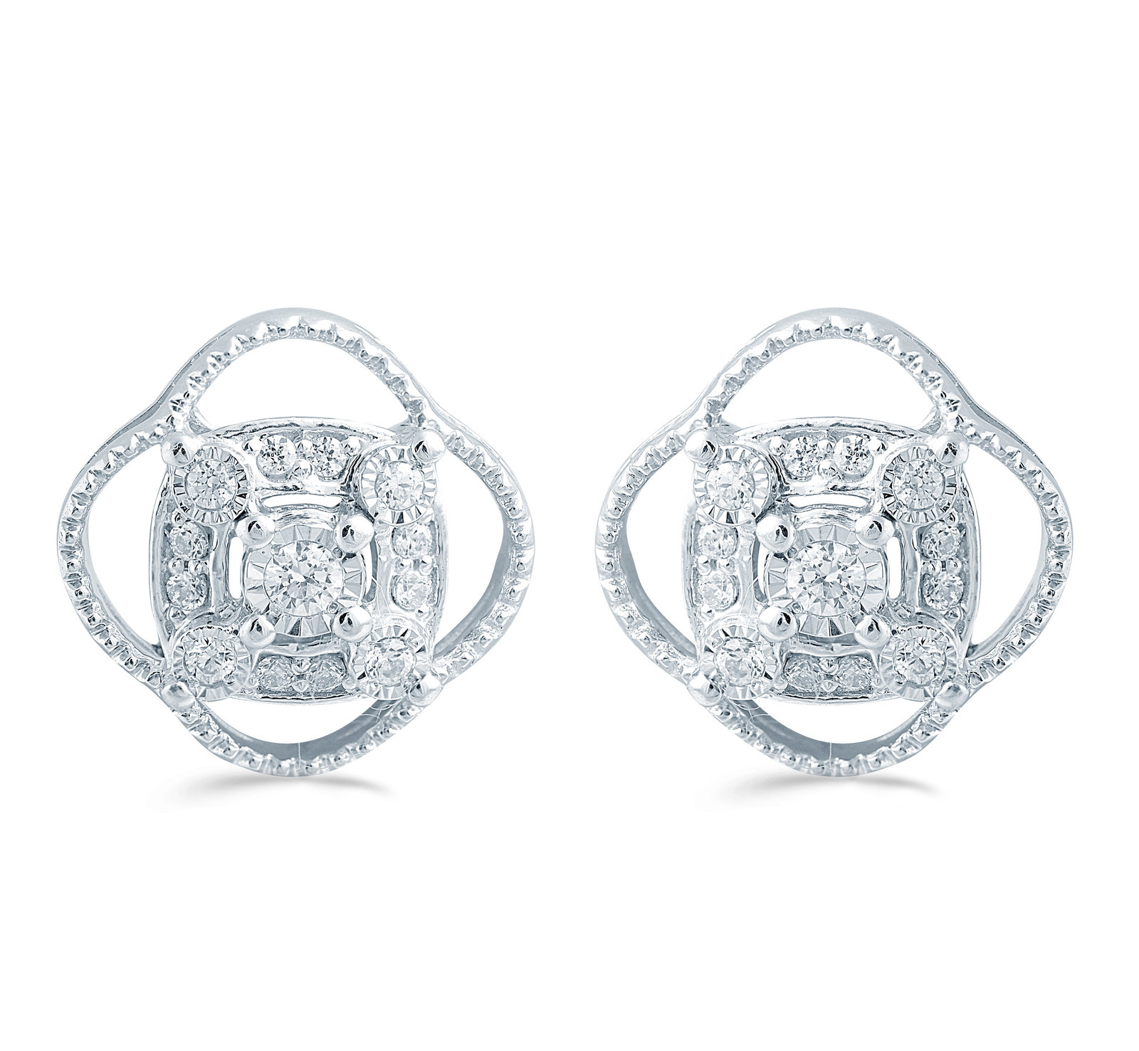 1/5CT TW Diamond Cushion Cluster Studs in Sterling Silver