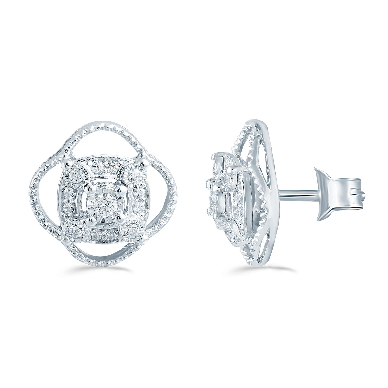 1/5CT TW Diamond Cushion Cluster Studs in Sterling Silver Crafted in sterling silver, each dainty earring features alternate diamond studded
