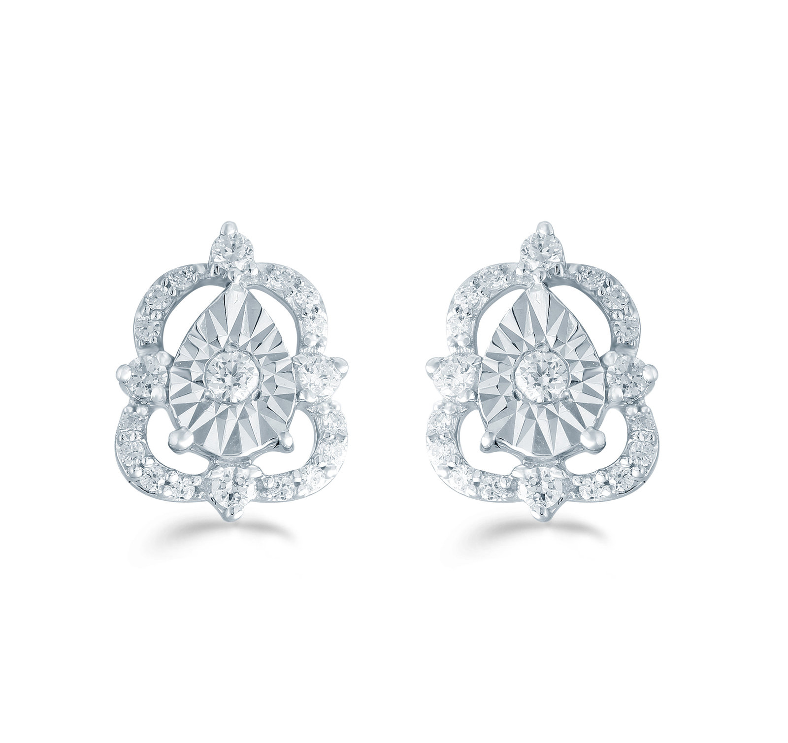 A Delicate Sterling Silver Cluster Design. Outlines a Beautiful Layering of 1/5 CT.TW. of Diamonds.