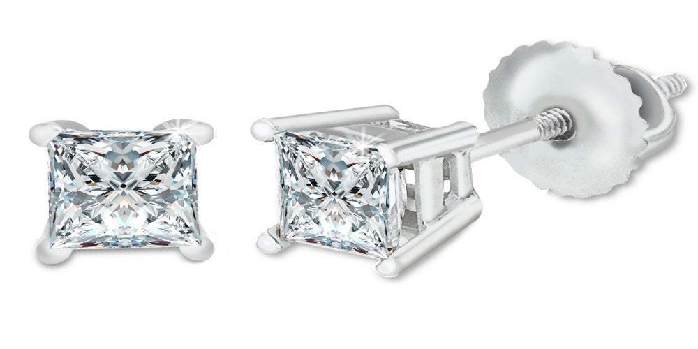 AGS Certified (Near Colorless VS1- VS2) 1/4ct TW to 1.00ct TW Princess Cut Natural Diamond Stud Earrings Set in 14K Gold with Screw Backs