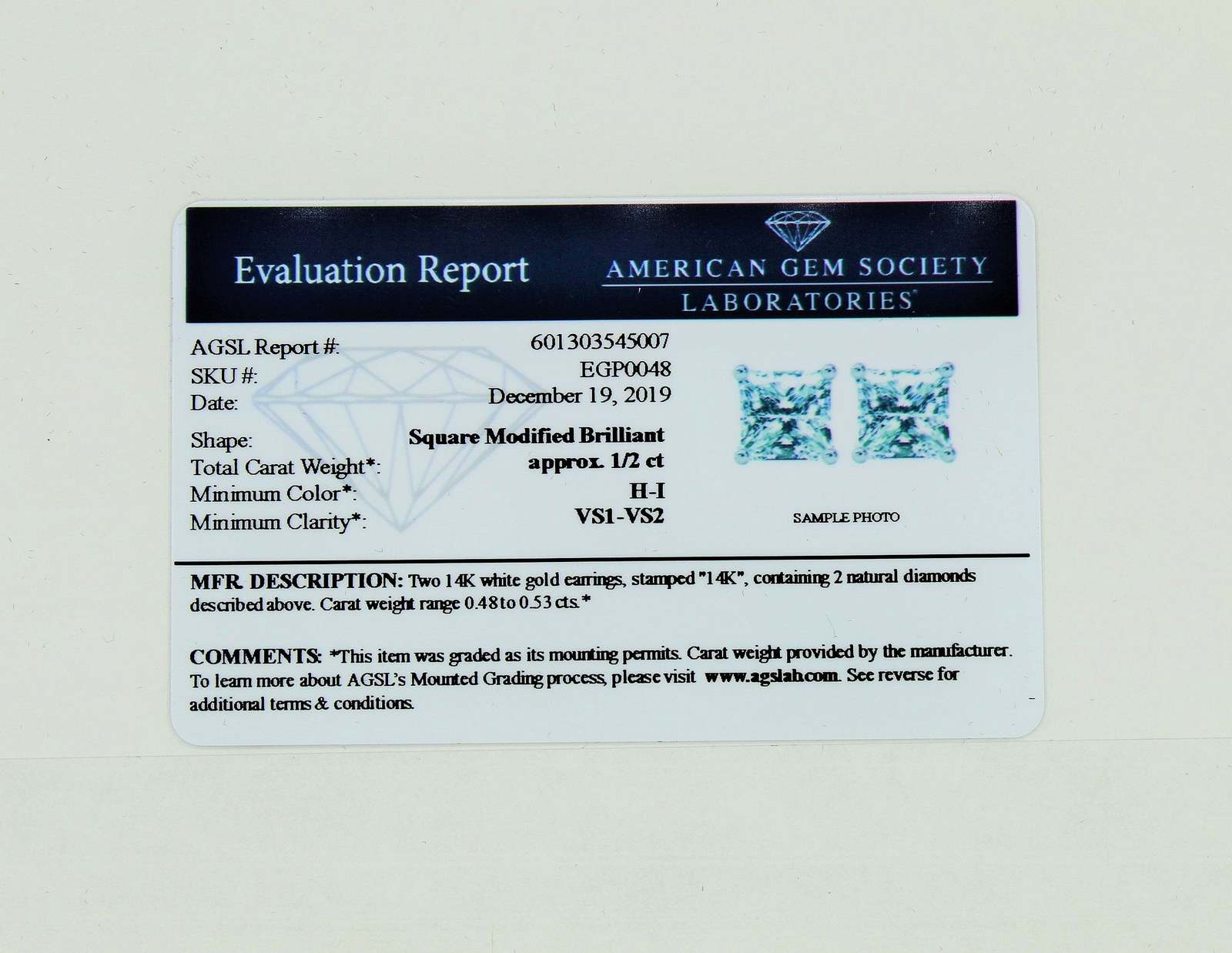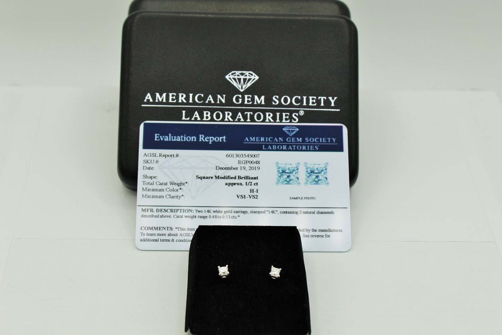AGS Earring box and AGS Certificate included, Each earring is tagged by the American Gem Society
