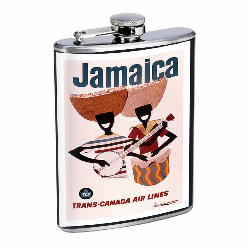 Jamaica Vintage Em1 8oz Stainless Steel Flask Drinking Whiskey Liquor