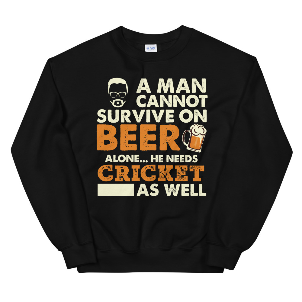 A Man Cannot Survive On Beer Alone He Needs Cricket As Well Unisex Sweatshirt