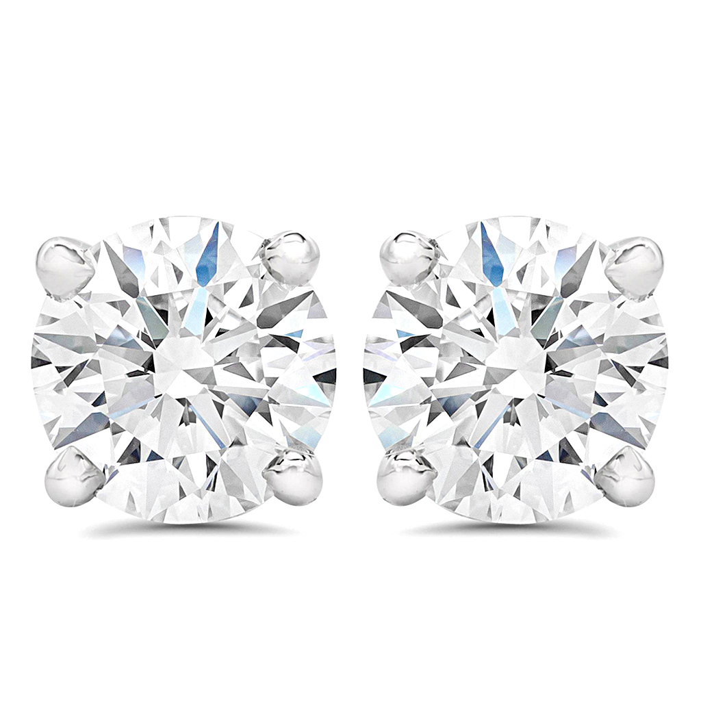 Beautifully matched diamonds, these diamond stud earrings feature round, near-colorless diamonds set in 14k gold four-prong settings with a screw post and back for added comfort and security.