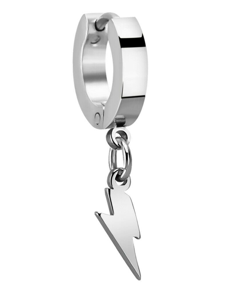 Dangling Lightning Bolt Charm Large Huggie Hoop Stainless Steel Unisex Earring