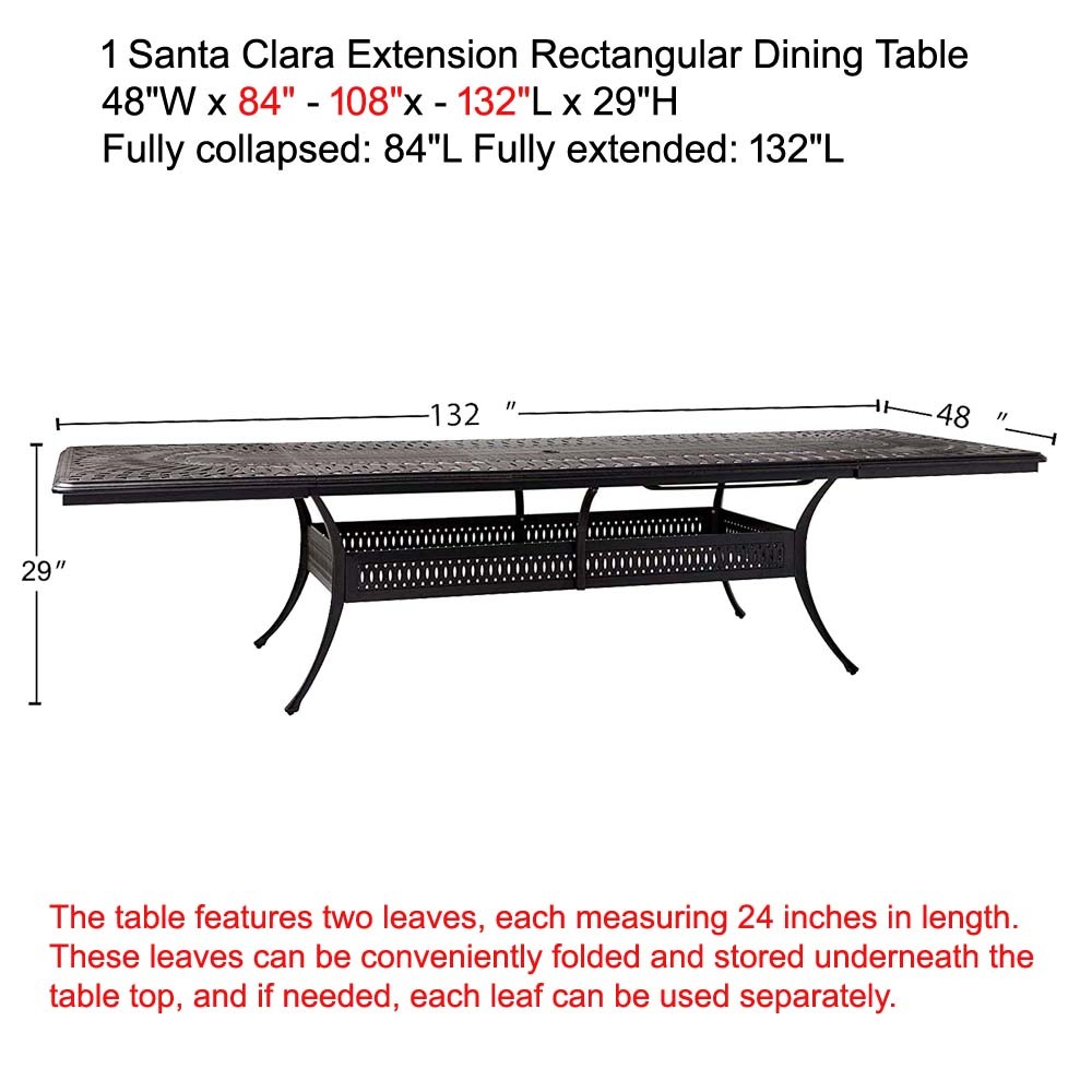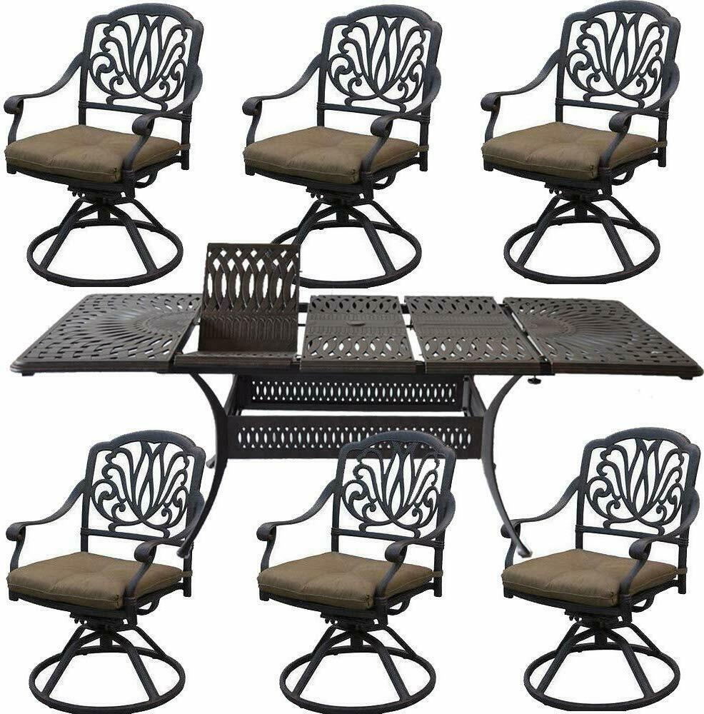 Cast Aluminum 7 Piece Outdoor Patio Dining Set Extendable Table 48 x 132.