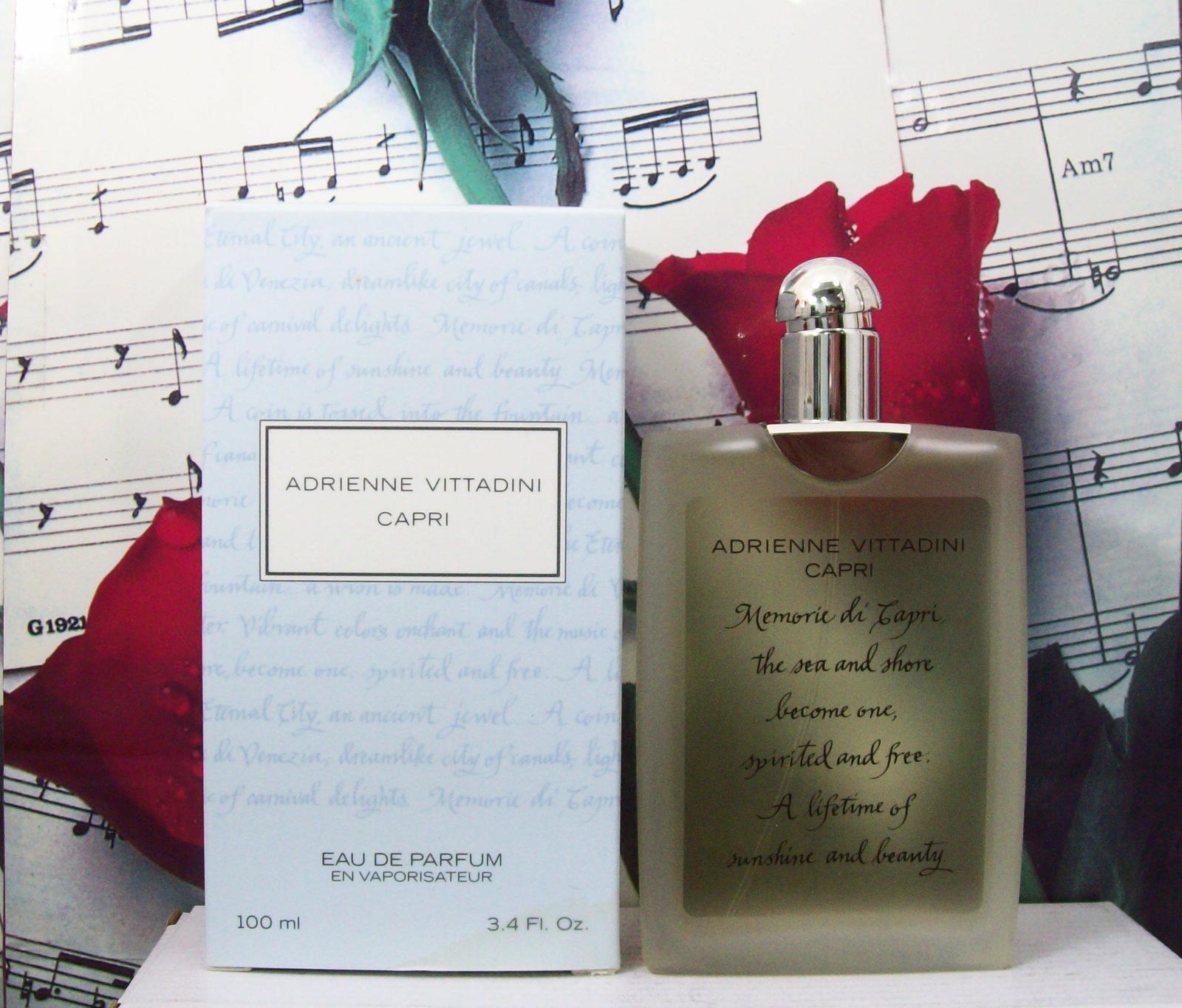 Capri Perfume by Adrienne Vittadini, Capri is a woody floral fragrance for women that was launched by Adrienne Vittadini in 2003. This fragrance has a refreshing citrus pop. It features top notes of iris and lemon peel. Its middle notes consist of jasmine, lily of the valley, and osmanthus. Its base notes consist of a blend of oakmoss, musk, and Brazilian rosewood. This fragrance has moderate sillage, so it should not be too overpowering to those around you.