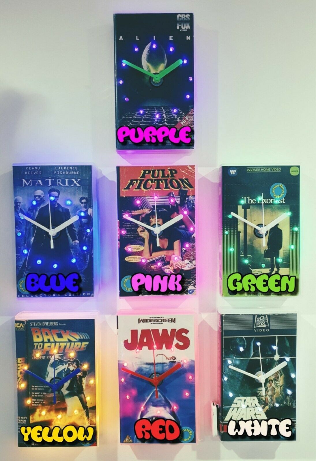 Our handmade VHS clocks are made from genuine VHS clam shell cases which we up cycle to create these unique items to give that ultimate retro feel.