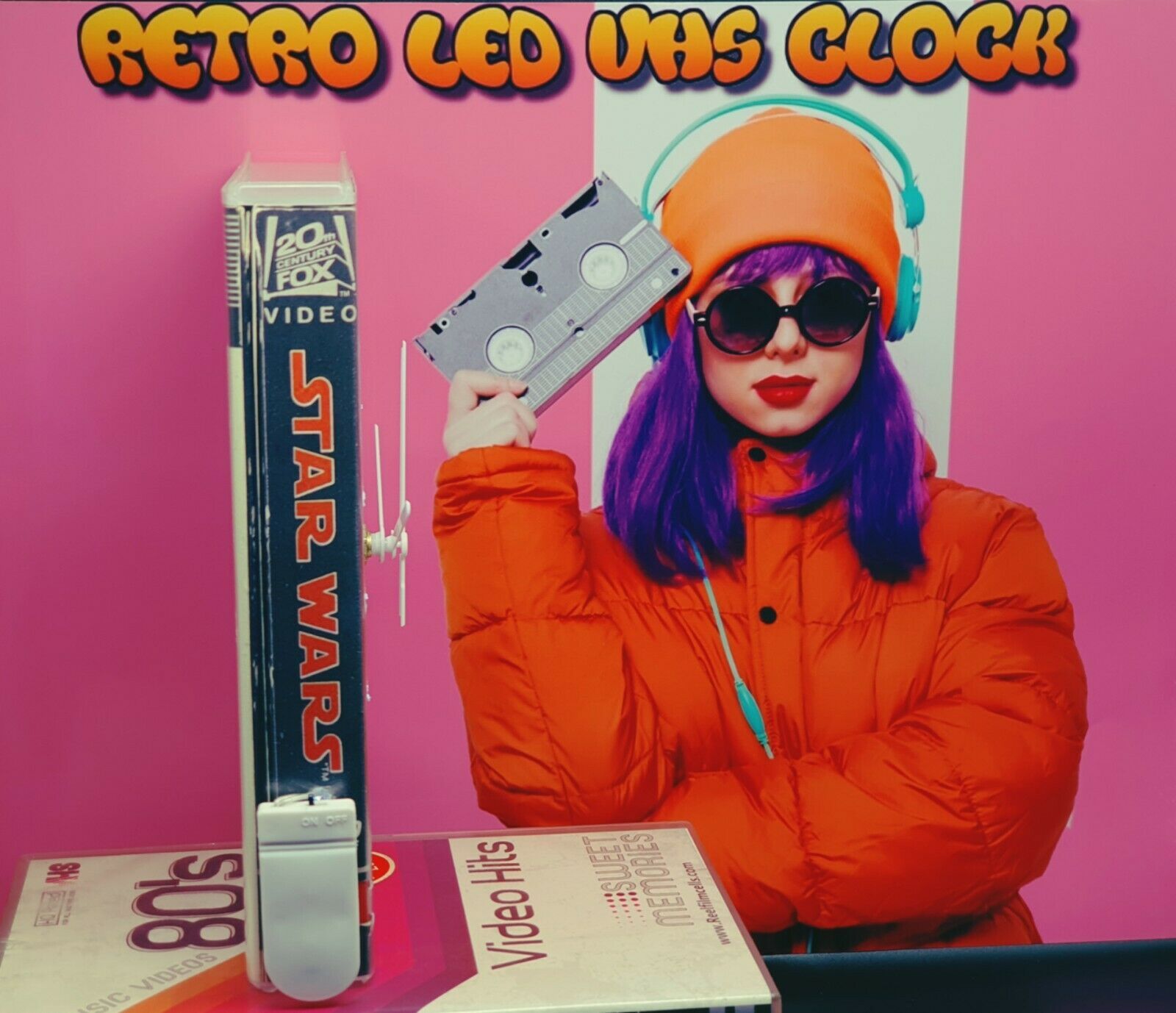 Each clock can be wall mounted (a mounting hook is provided) or placed free standing on any flat surface. Our VHS Clocks are fitted with super bright, energy saving LED lights, that are completely safe, heat free and ultra-low energy. They have a super long lifespan of over 60,000+ Hours!