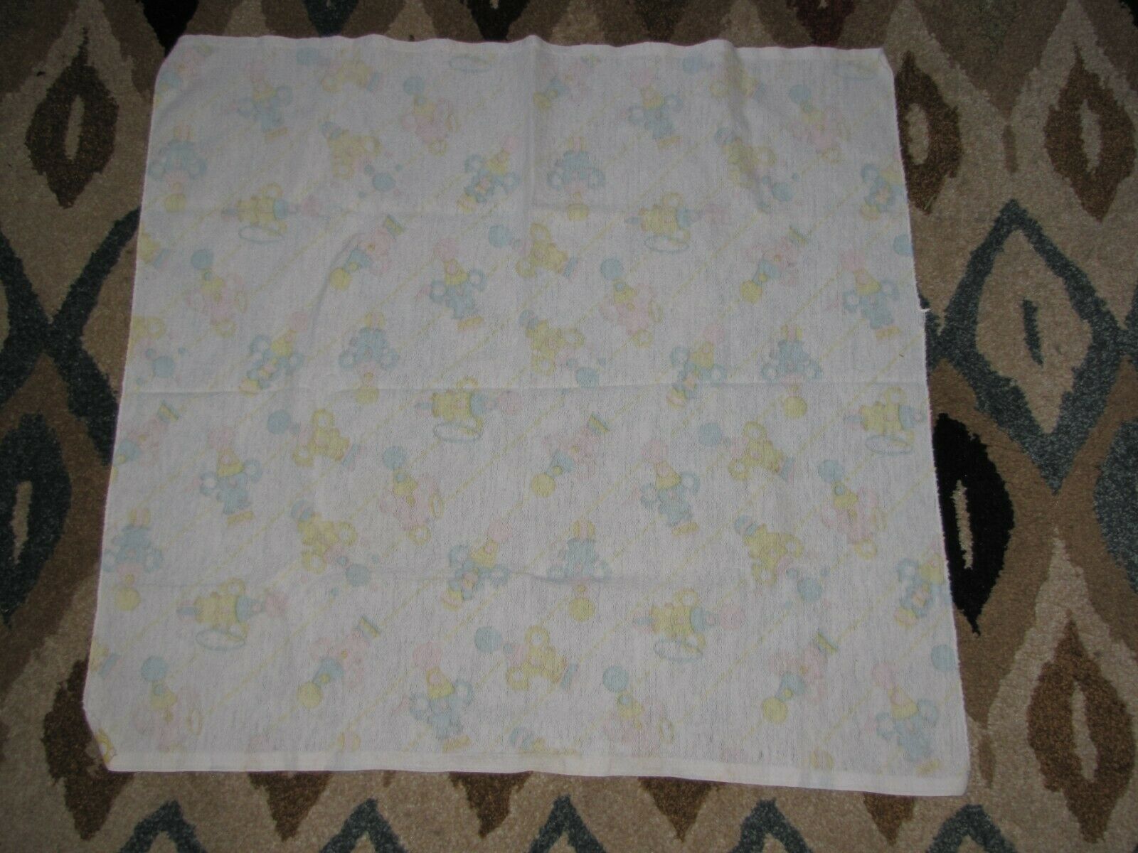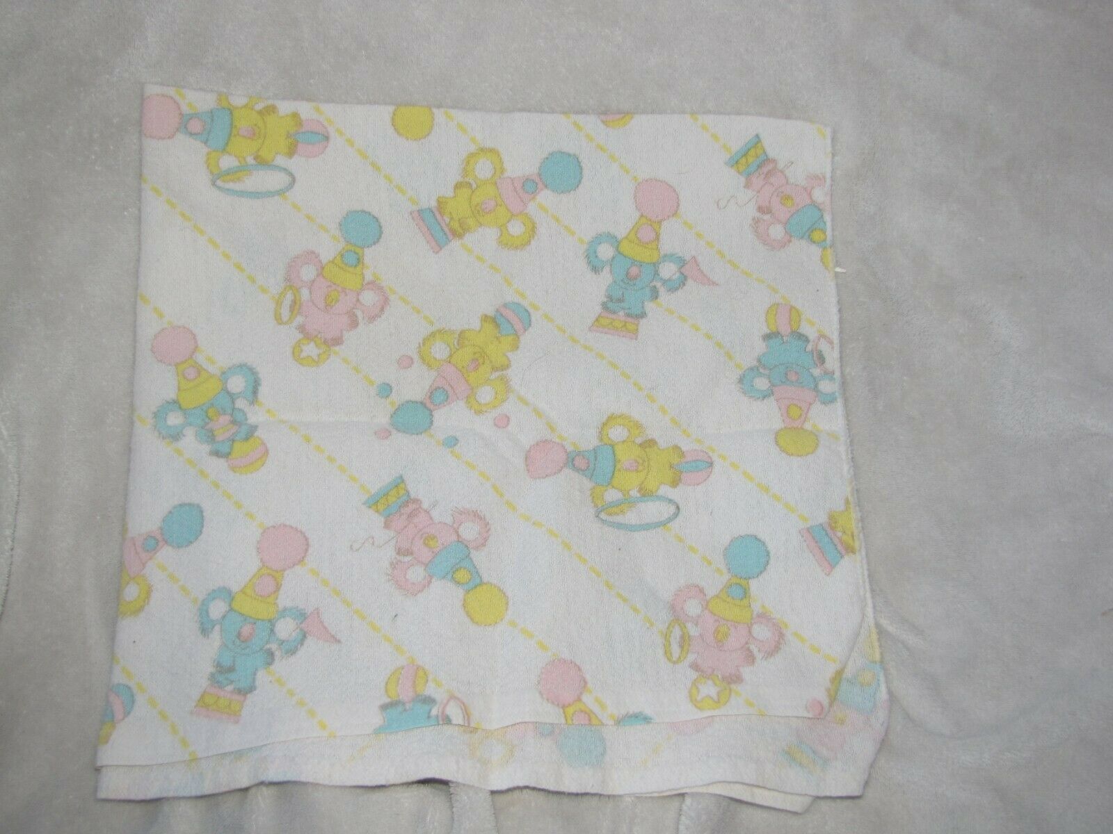 Vintage Baby Blanket Pastel Koala Bear Circus White Blue Pink Yellow Unisex