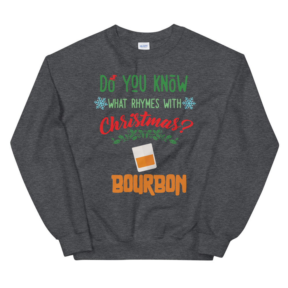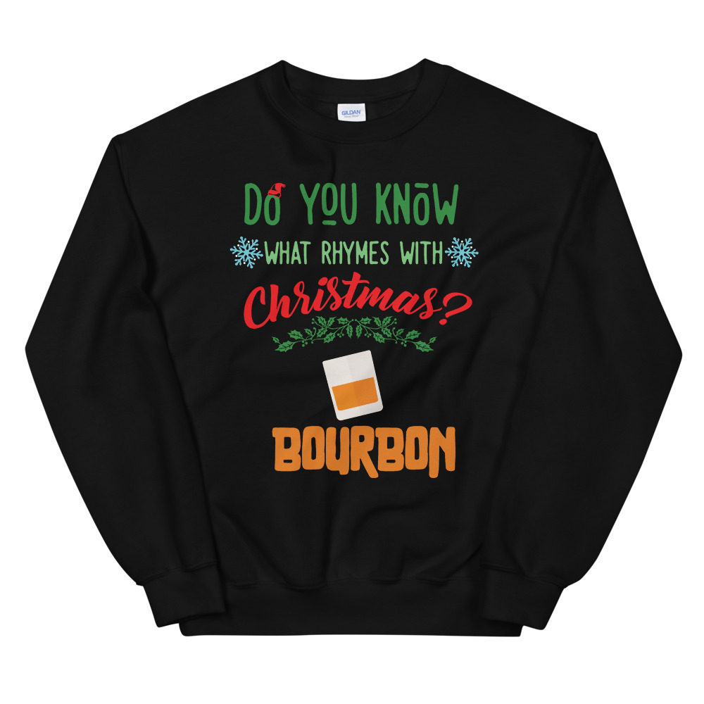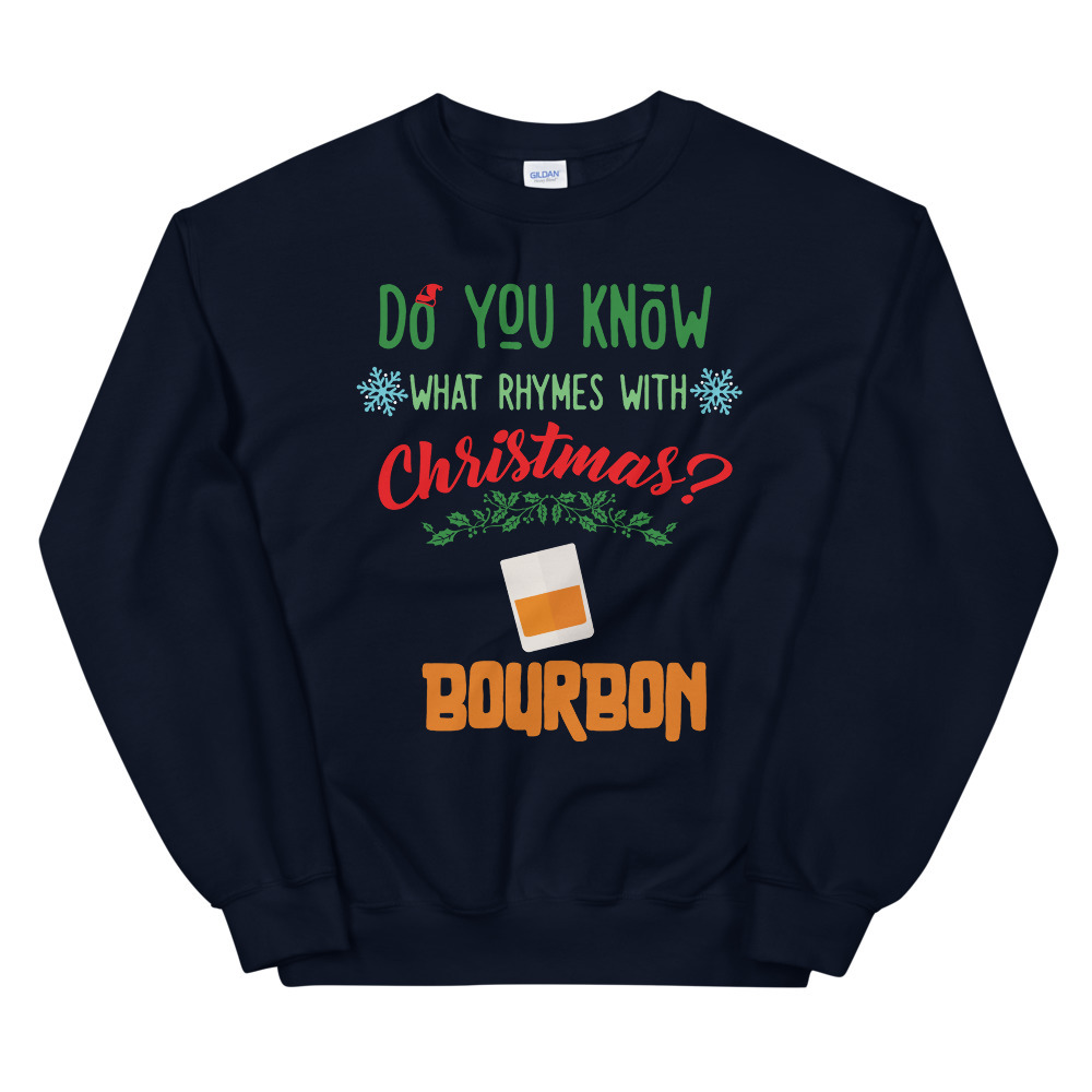 Know What Ryhmes With Christmas? Bourbon Xmas Drinking Shirt Unisex Sweatshirt