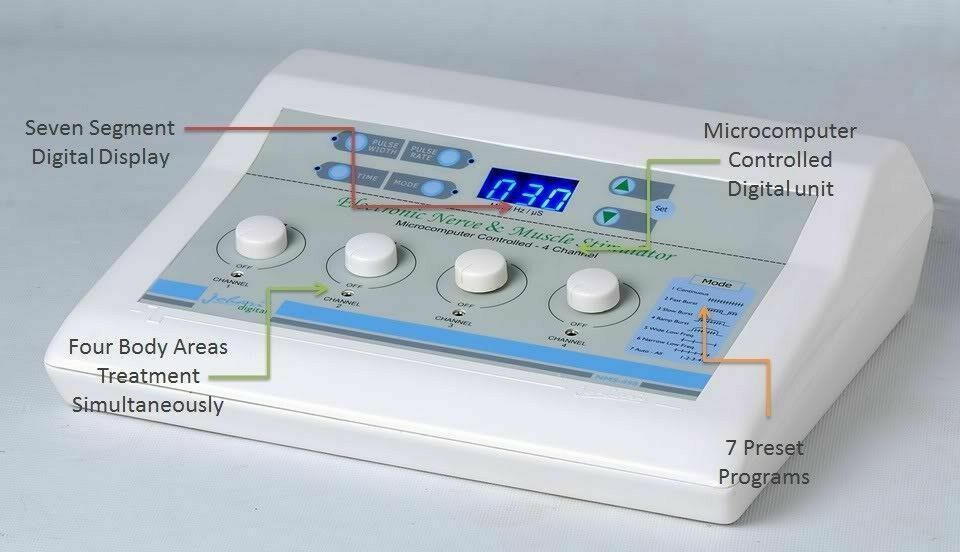 This excellent machine provides seven different modes of N..M. E S stimulation which are designed to act on the specific muscle groups. This micro computer controlled unit combines the proven therapies suited best to the rehabilitation needs.