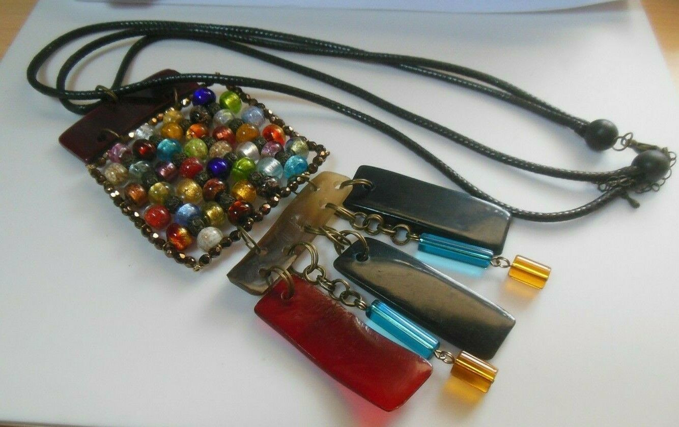 Vintage Long Foiled Glass Beads Pendant and 50 similar items