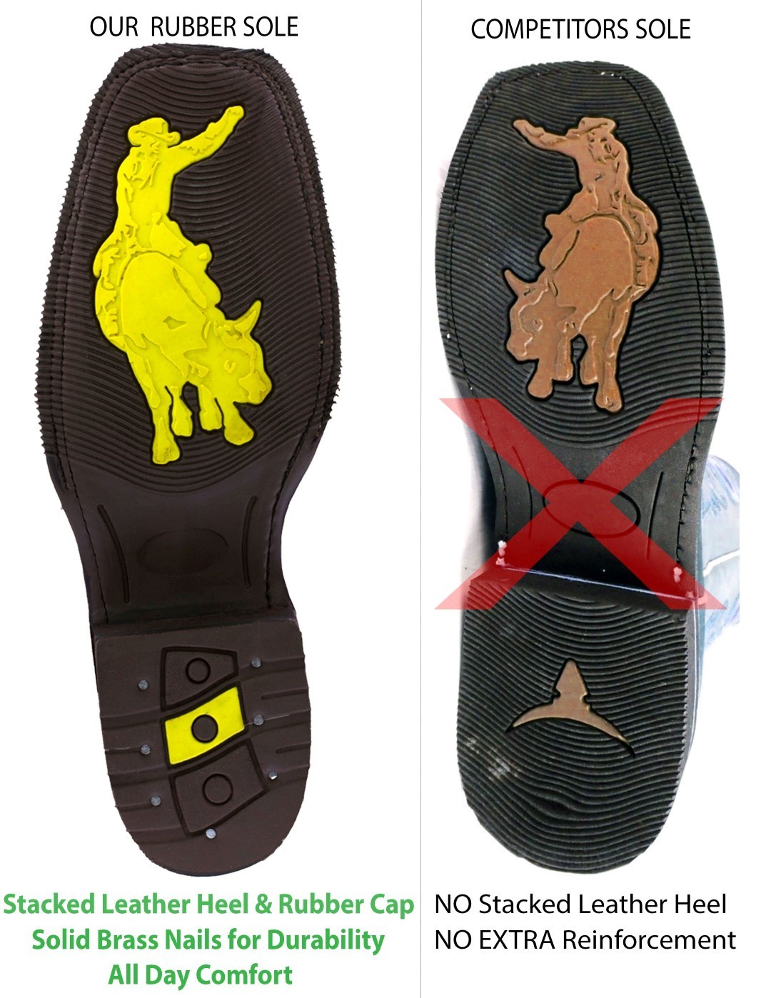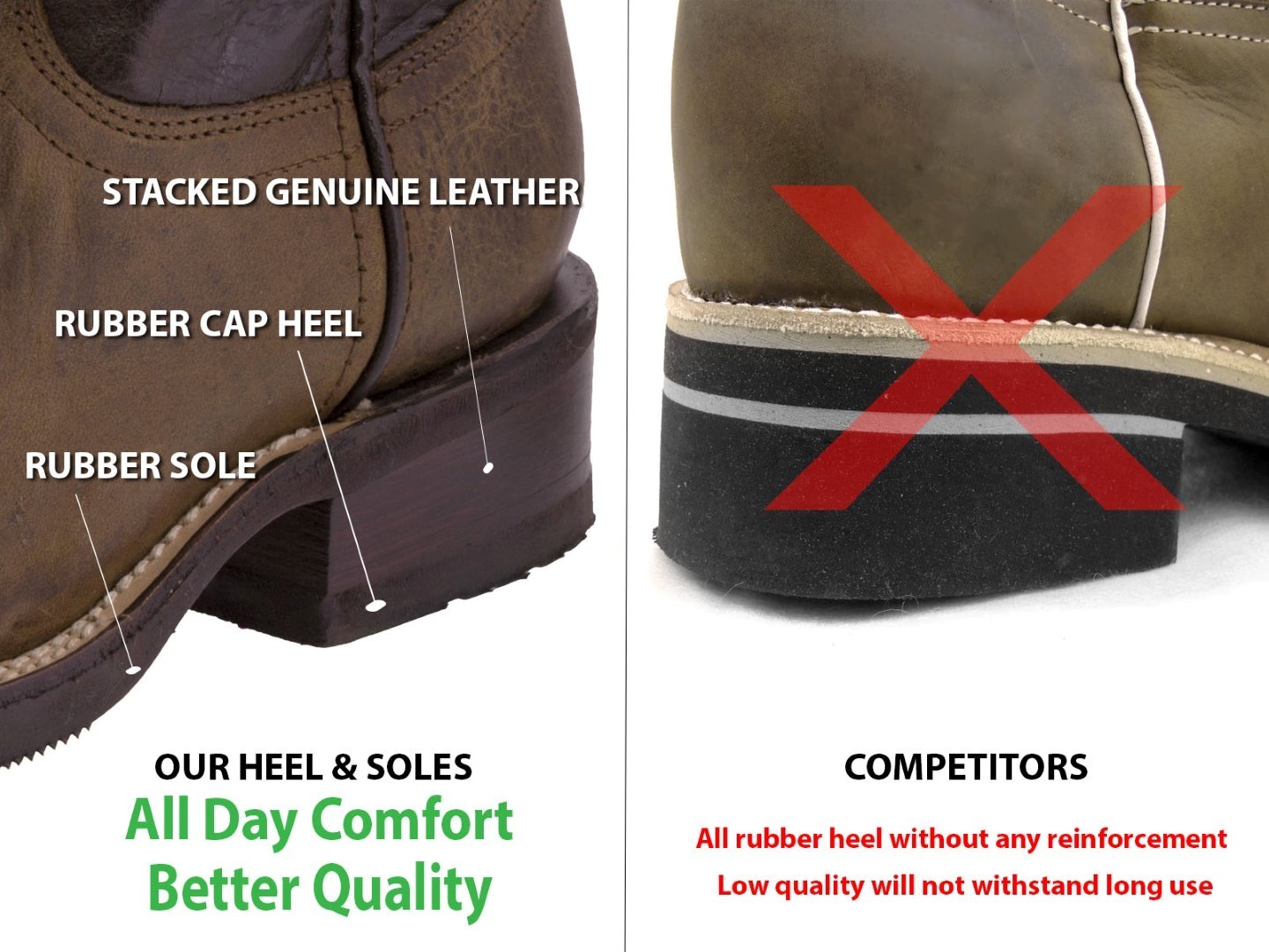 These boots come in different rubber soles designs. Please reach out to us if you are interested in a particular sole design. Color accuracy of item will vary. Boots may appear lighter or darker depending on monitor and device. We go to great lengths to assure color accuracy.