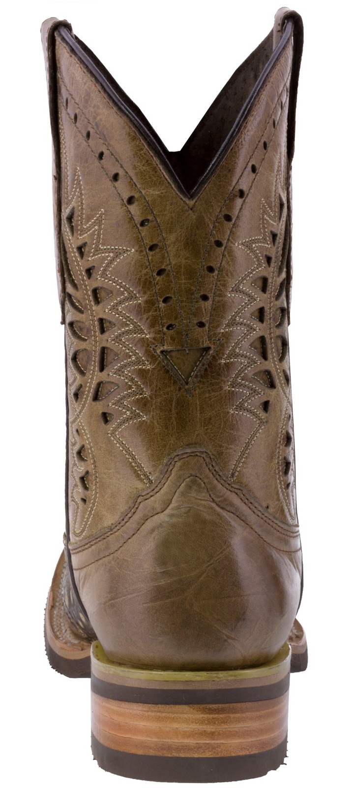 Mens Western Cowboy Boots Sand Alligator Belly Pattern Leather Square Toe Botas