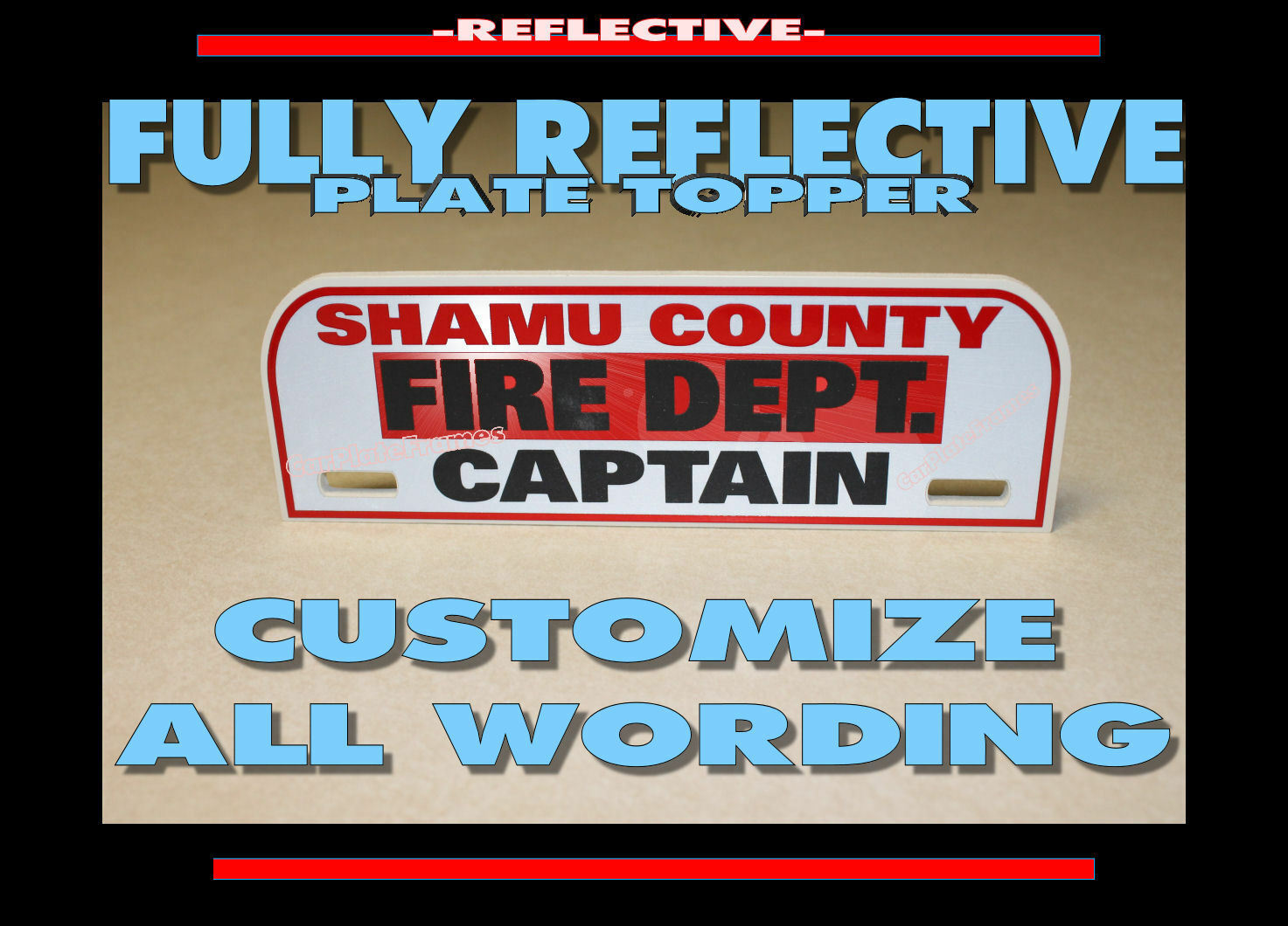 BOTTOM MOUNT CUSTOM MADE REFLECTIVE Firefighter EMT FIRE License Plate Topper