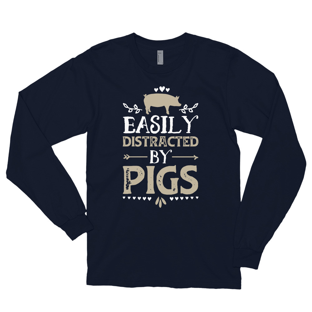 Easily Distracted By Pigs Funny Pig Lover Gifts Shirt Long sleeve t-shirt