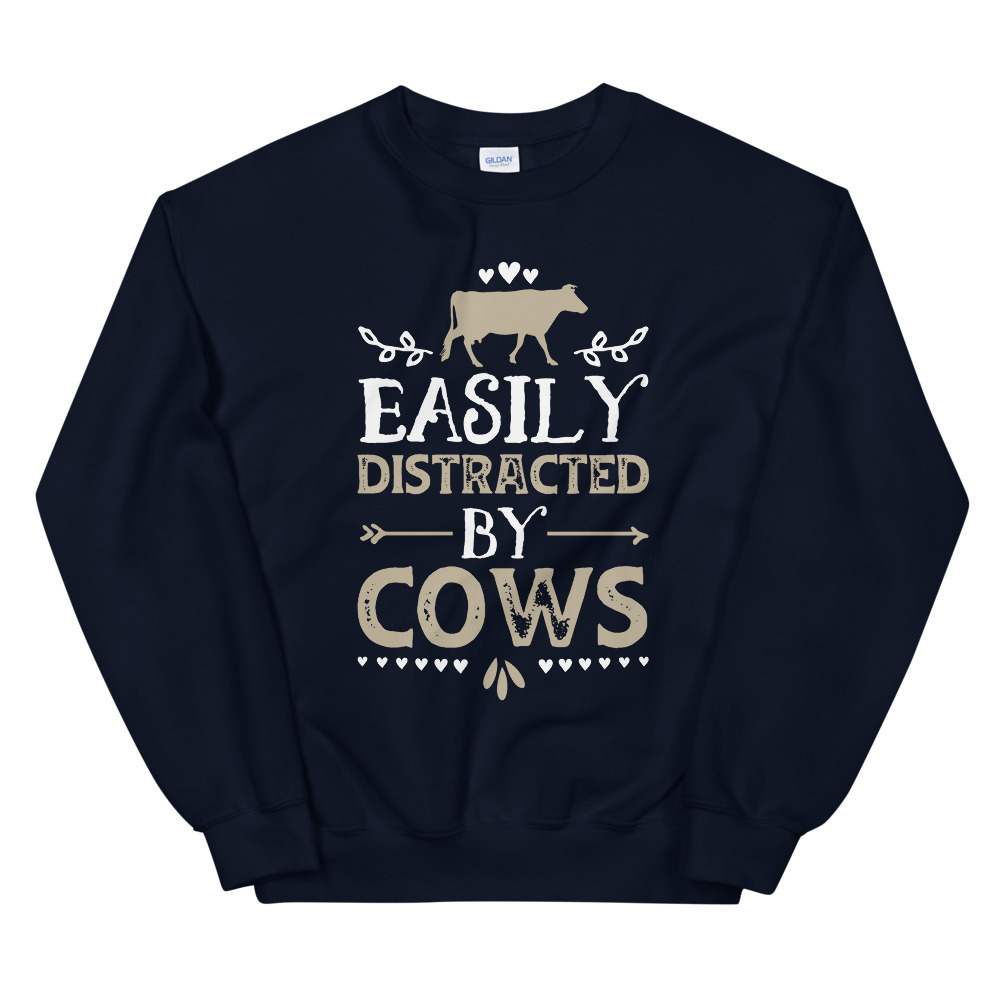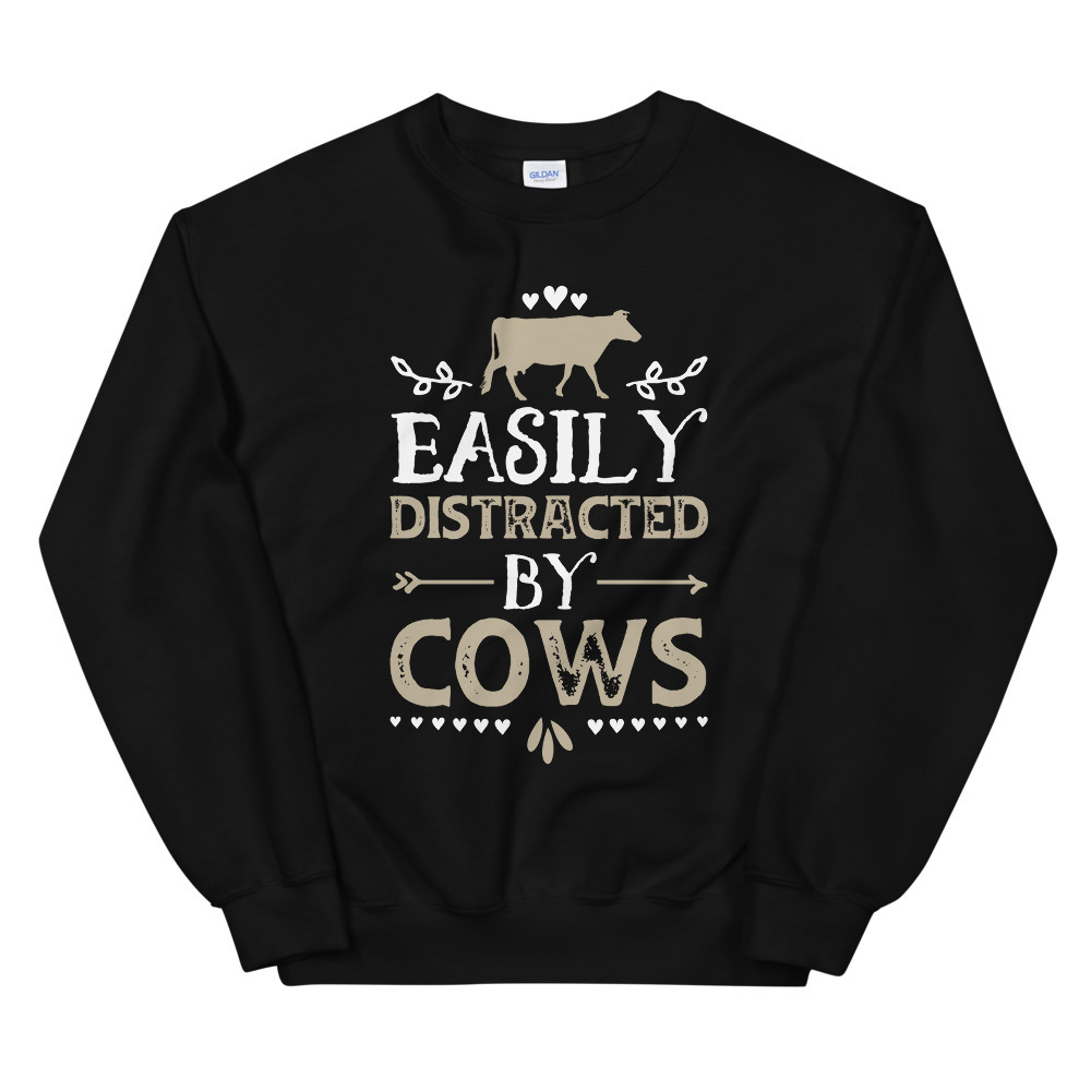 Easily Distracted By Cows Funny Cow Lover Gifts Shirt Unisex Sweatshirt