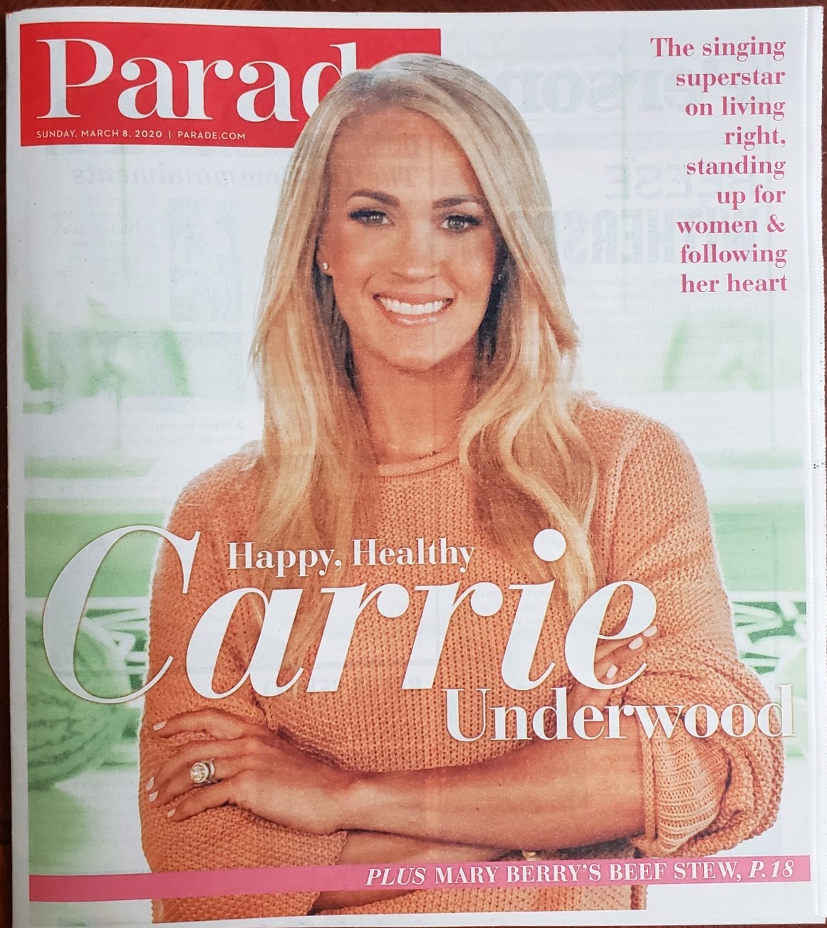 Parade magazine by Las Vegas Review Journal March 8th 2020 issue features Carrie Underwood, the singing superstar on living right, standing up for women following her heart.