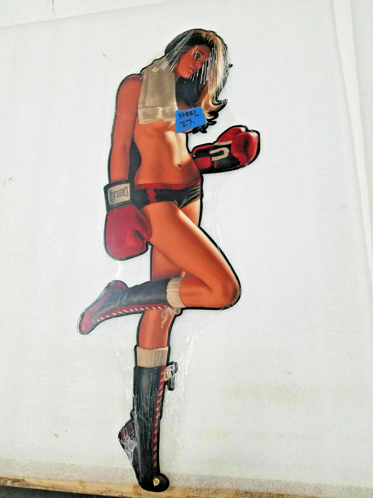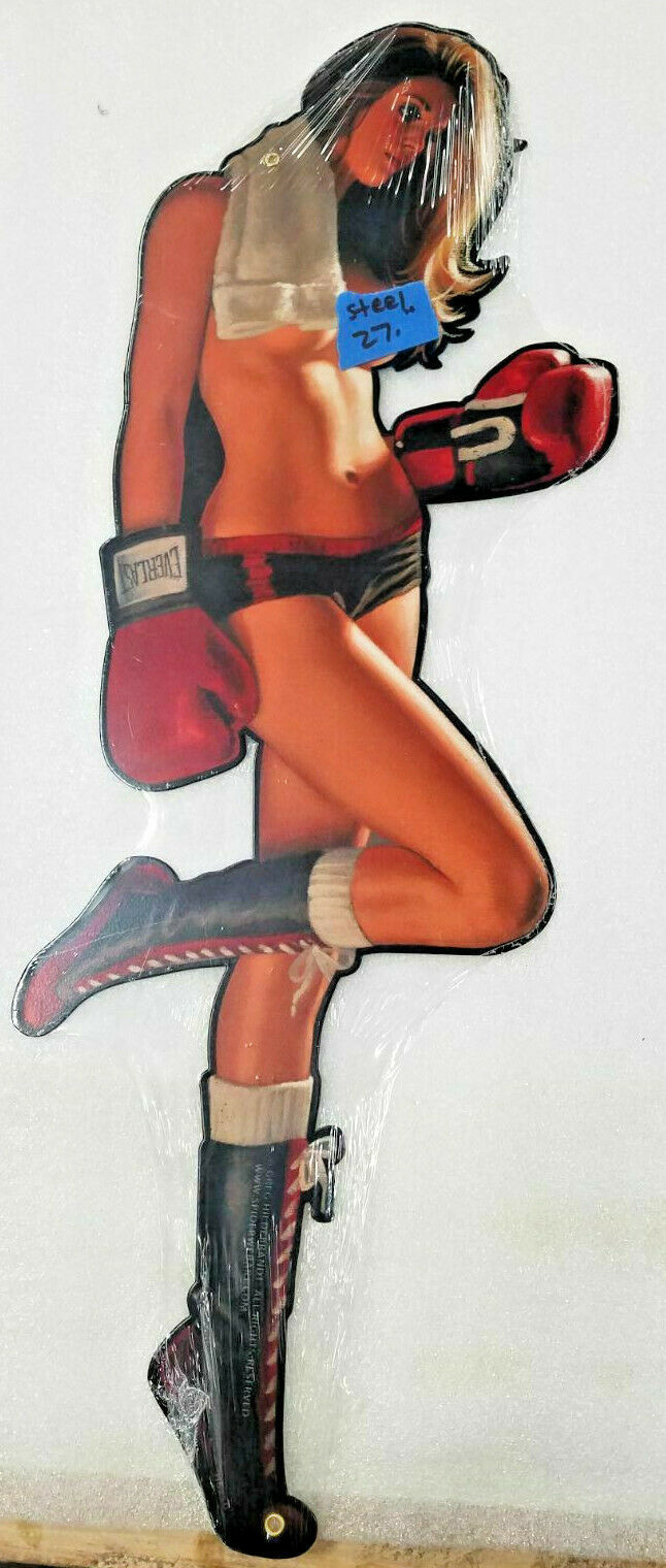 NEW Sealed Huge 22" blonde boxer model Pinup pin up girl this is 22 X 12 USA steel metal sign