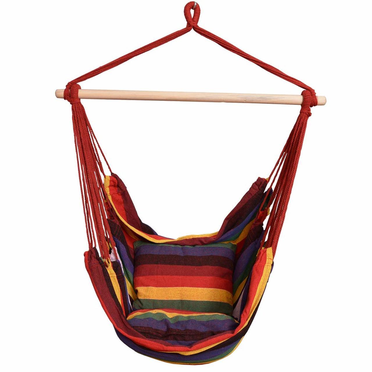TOUCAN OUTDOOR Hanging Rope Chair, Hammock Swing Chair with Pillow Set, Rainbow