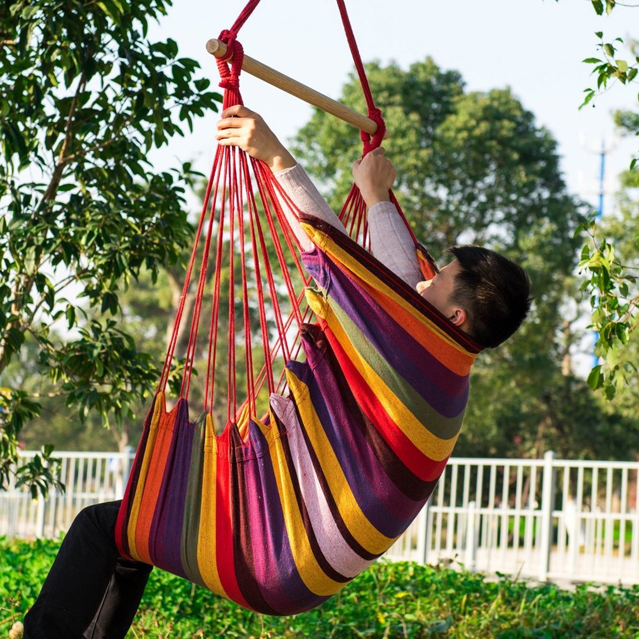 Hang this hammock chair anywhere from the yard to the patio or beach - all you need is a single anchor point for the loop end top. A branch, beam, or hammock stand will all work great and the stylish yet subdued design makes this chair suitable for any environment. You can use it like a standard chair for sitting, relaxing or reading and you can also lay back and nap whenever you feel like it. It’s sure to become your go-to relaxing companion and will last you for years to come.