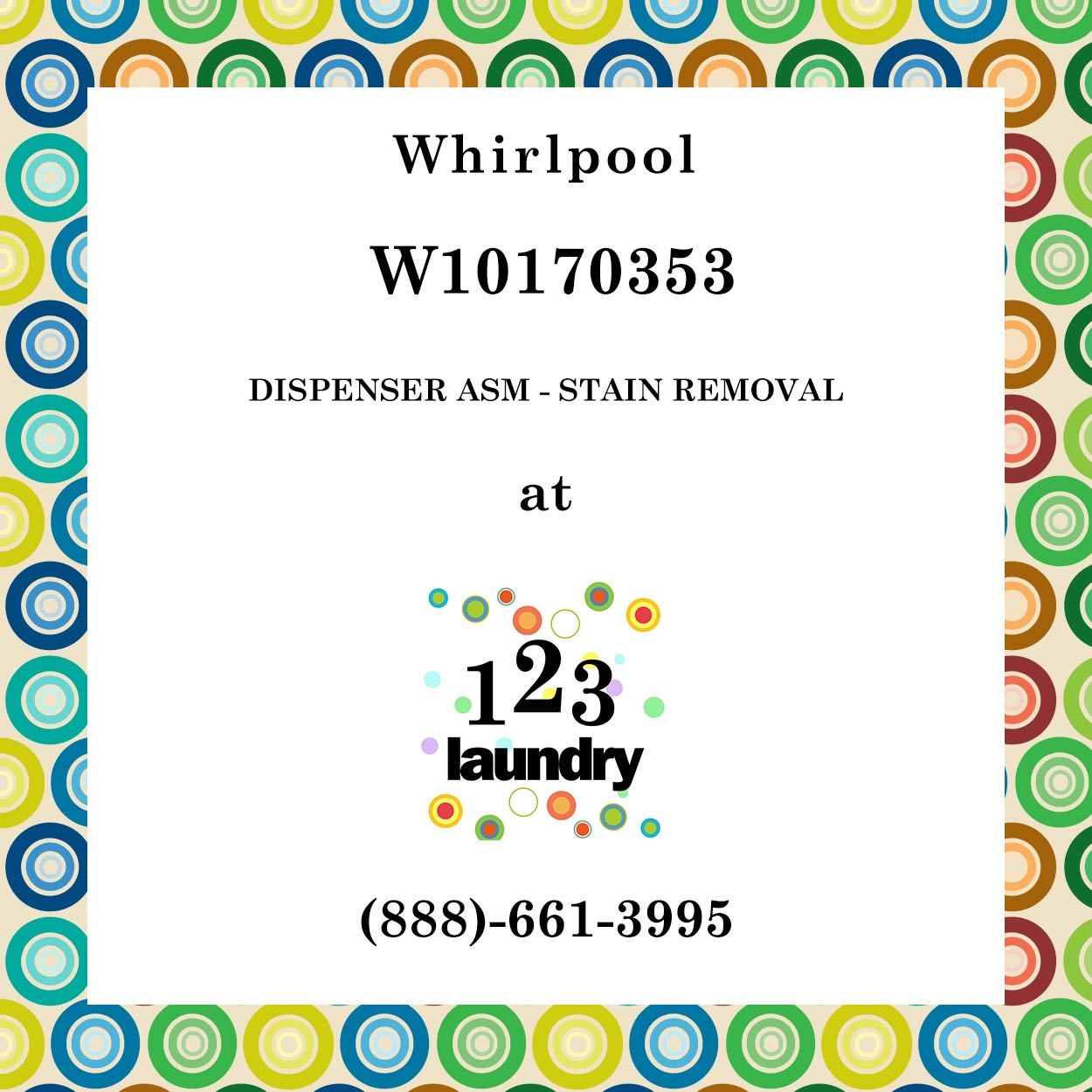 123 Laundry Solutions carries commercial laundry parts for all major brands. We offer commercial washer parts and commercial dryer parts at discounted prices. Purchase this Whirpool-W10170353-DISPENSER ASM - STAIN REMOVAL to repair your commercial laundry equipment and save money today.