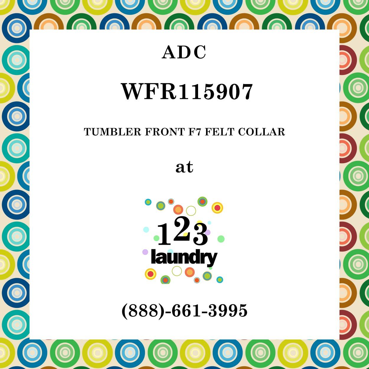 123 Laundry Solutions carries commercial laundry parts for all major brands. We offer commercial washer parts and commercial dryer parts at discounted prices. Purchase this ADC-WFR115907-TUMBLER FRONT F7 FELT COLLAR to repair your commercial laundry equipment and save money today.