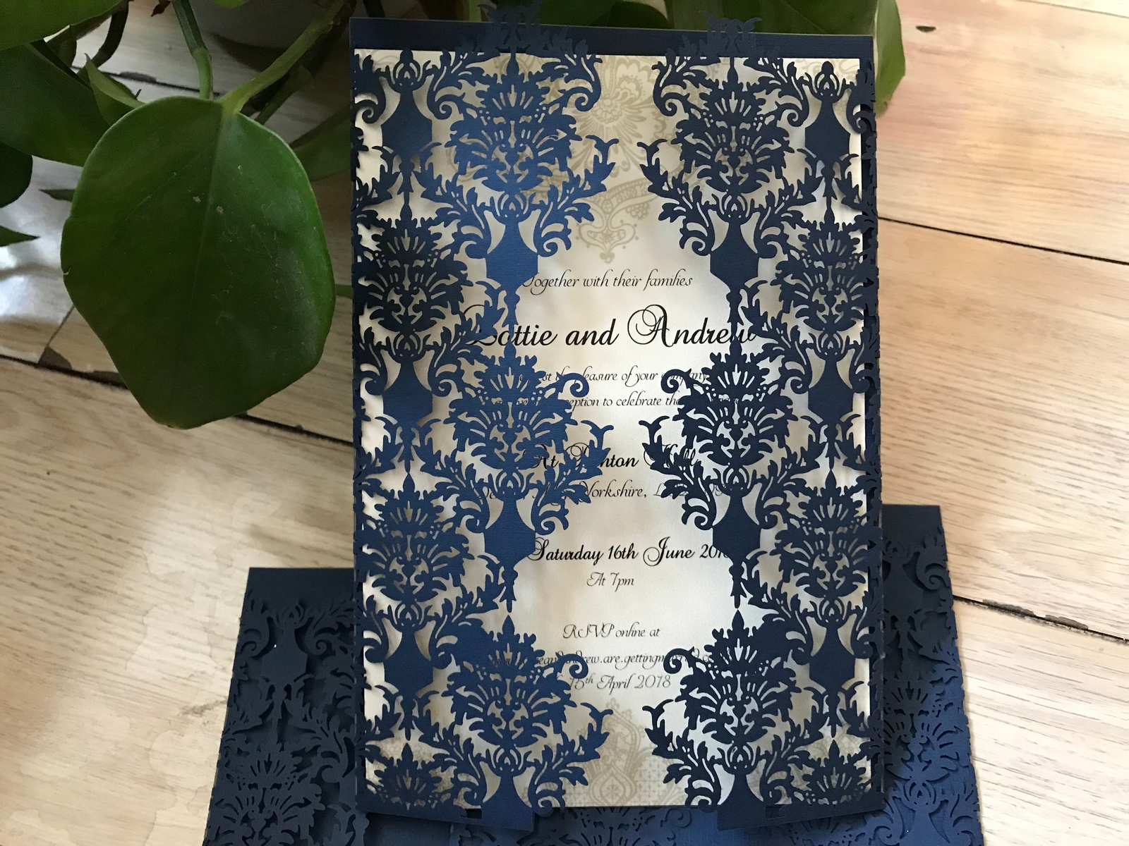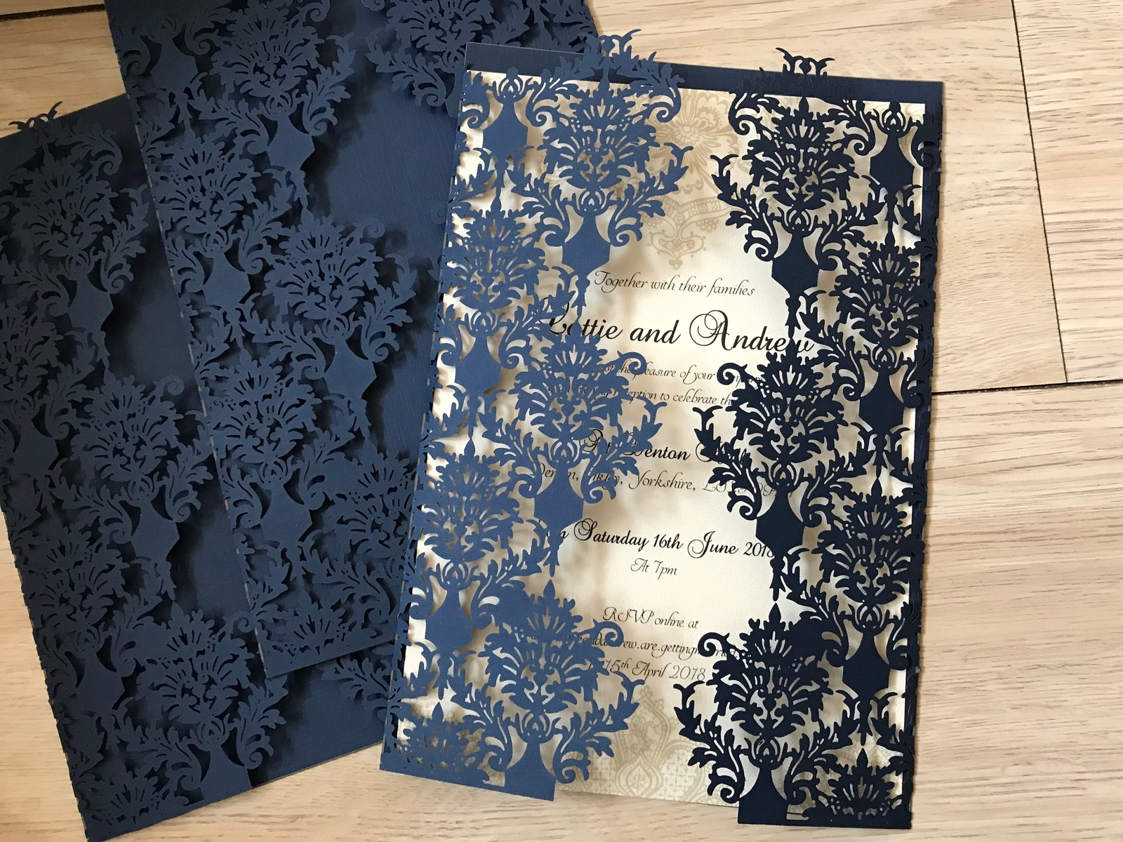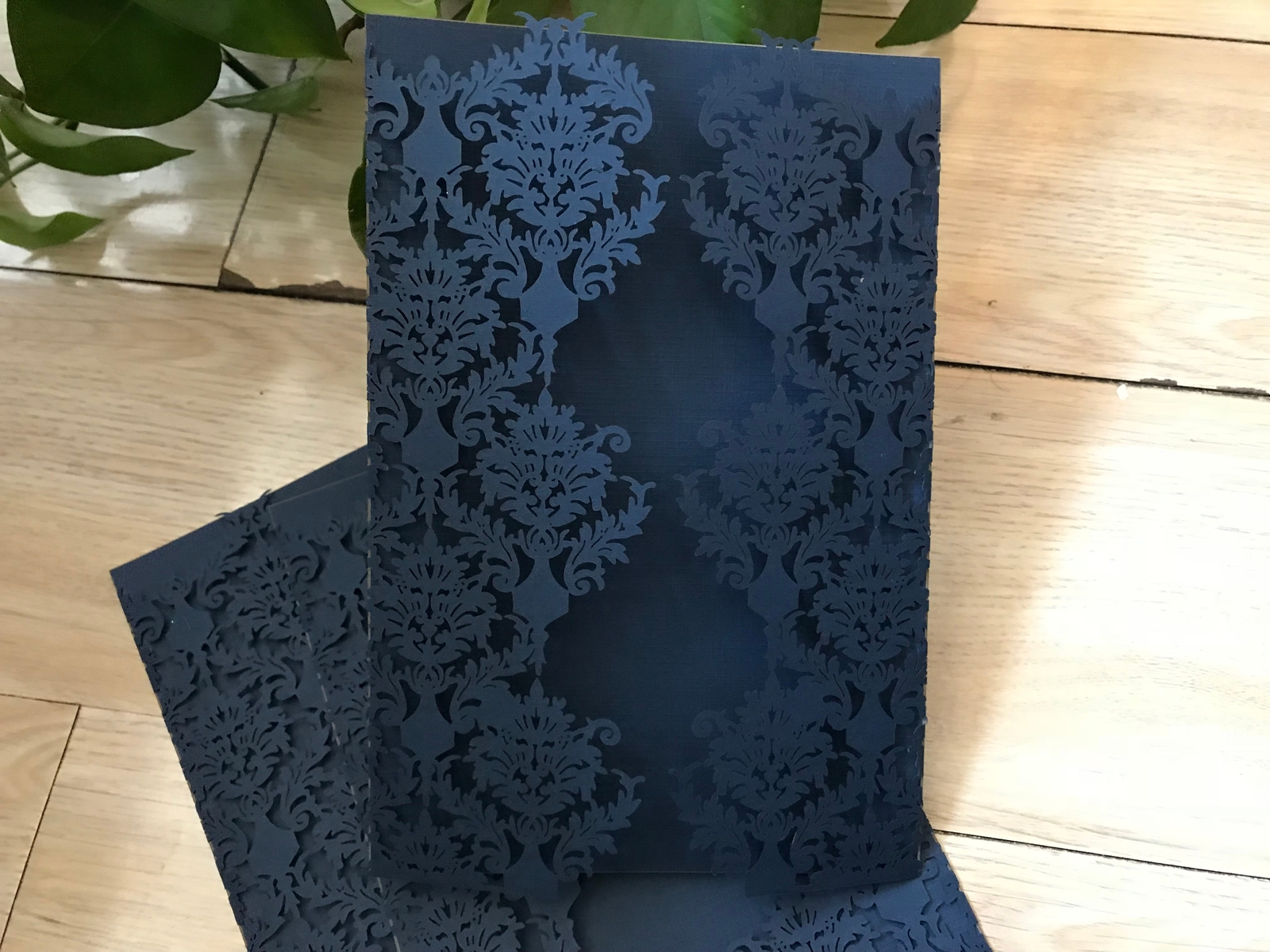 Navy Blue Invitation Cards,Laser Cut Wedding Invitations,50pcs Wedding Cards