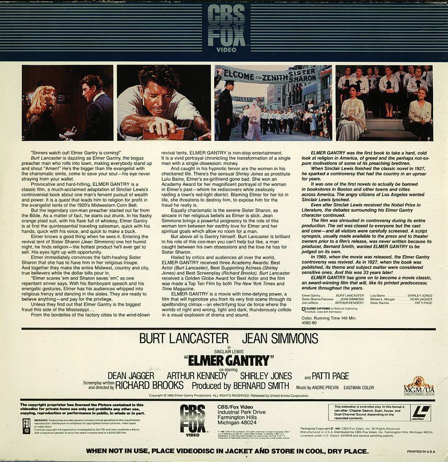 This is a previously viewed LASERDISC of the rare drama ELMER GANTRY, staring: