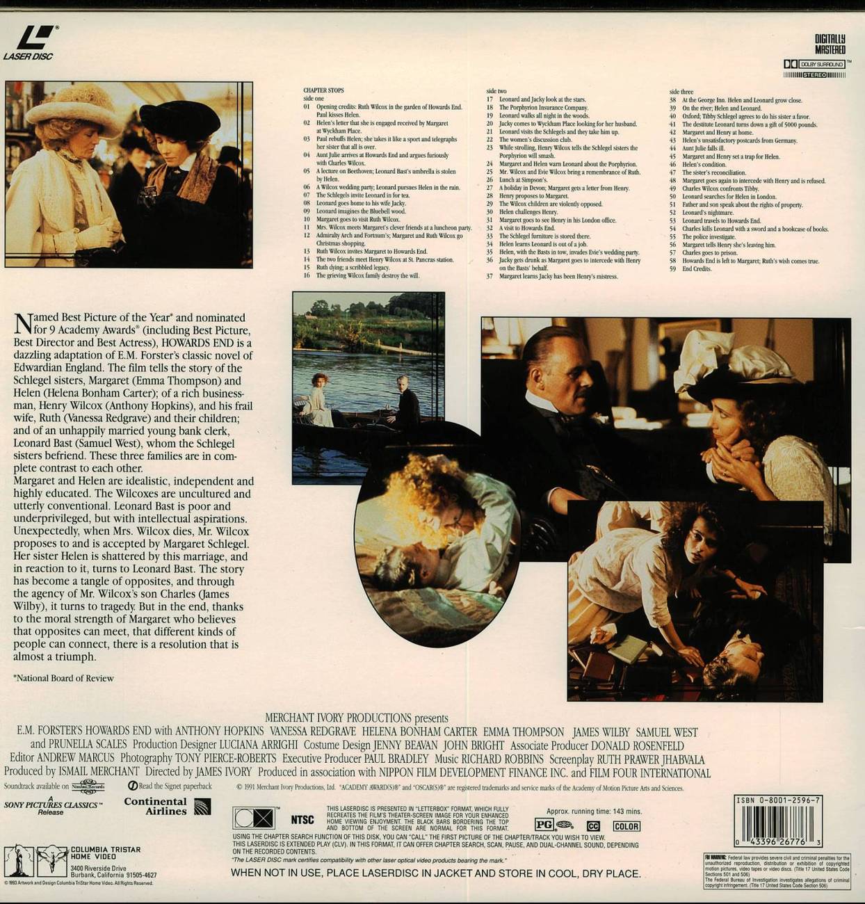 HOWARDS END LTBX VANESSA REDGRAVE LASERDISC RARE