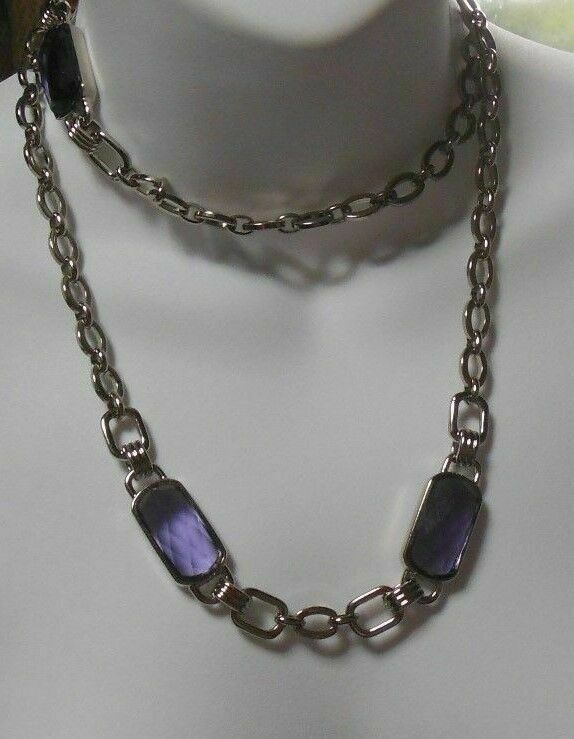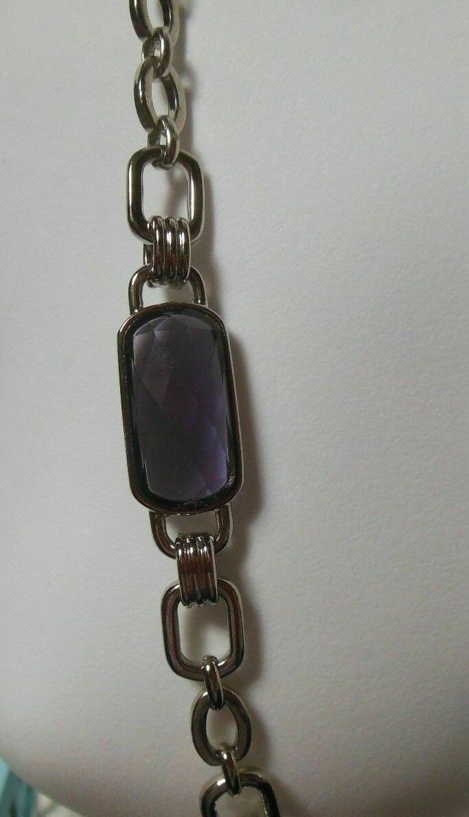 Signed AK Anne Klein Silver-tone Purple Stone Chain Necklace