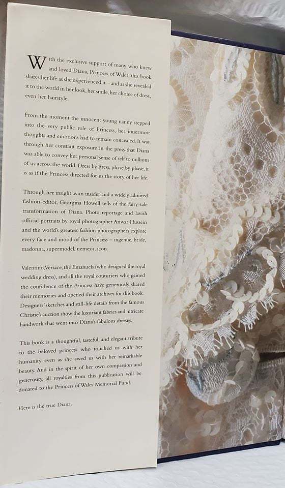 Through her insight as an insider and internationally admired fashion editor, Georgina Howell tells of the fairy-tale transformation of Diana. Photo- reportage and lavish official portraits by royal photographer Anwar Hussein and the world's greatest fashion photographers explore every carefully planned public face and mood of the Princess-ingenue, bride, madonna, supermodel, nemesis, and icon.