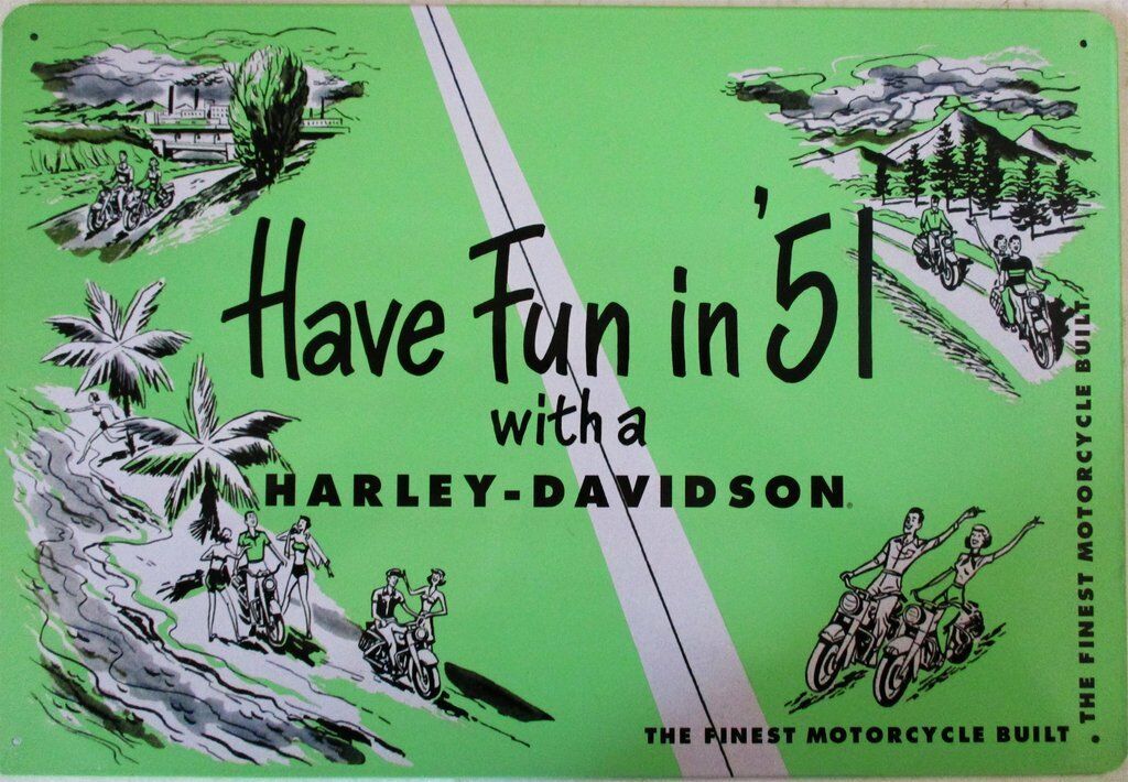 Harley Davidson Fun in 1951 Motorcycle Tin Sign